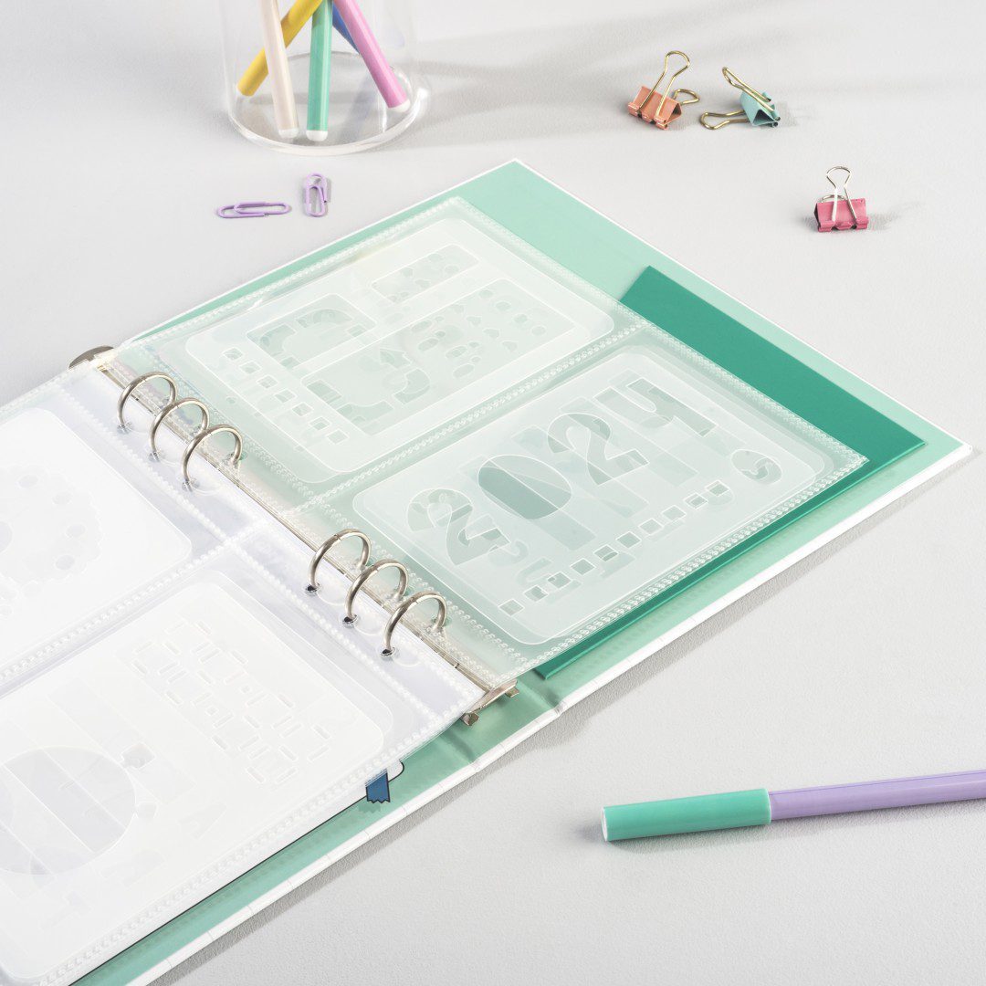 All of our Lettering Stencils fit inside our storage binders when used with our storage sleeves, making it easy to organise and access your stencils when you need them.