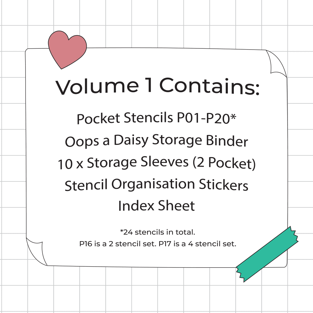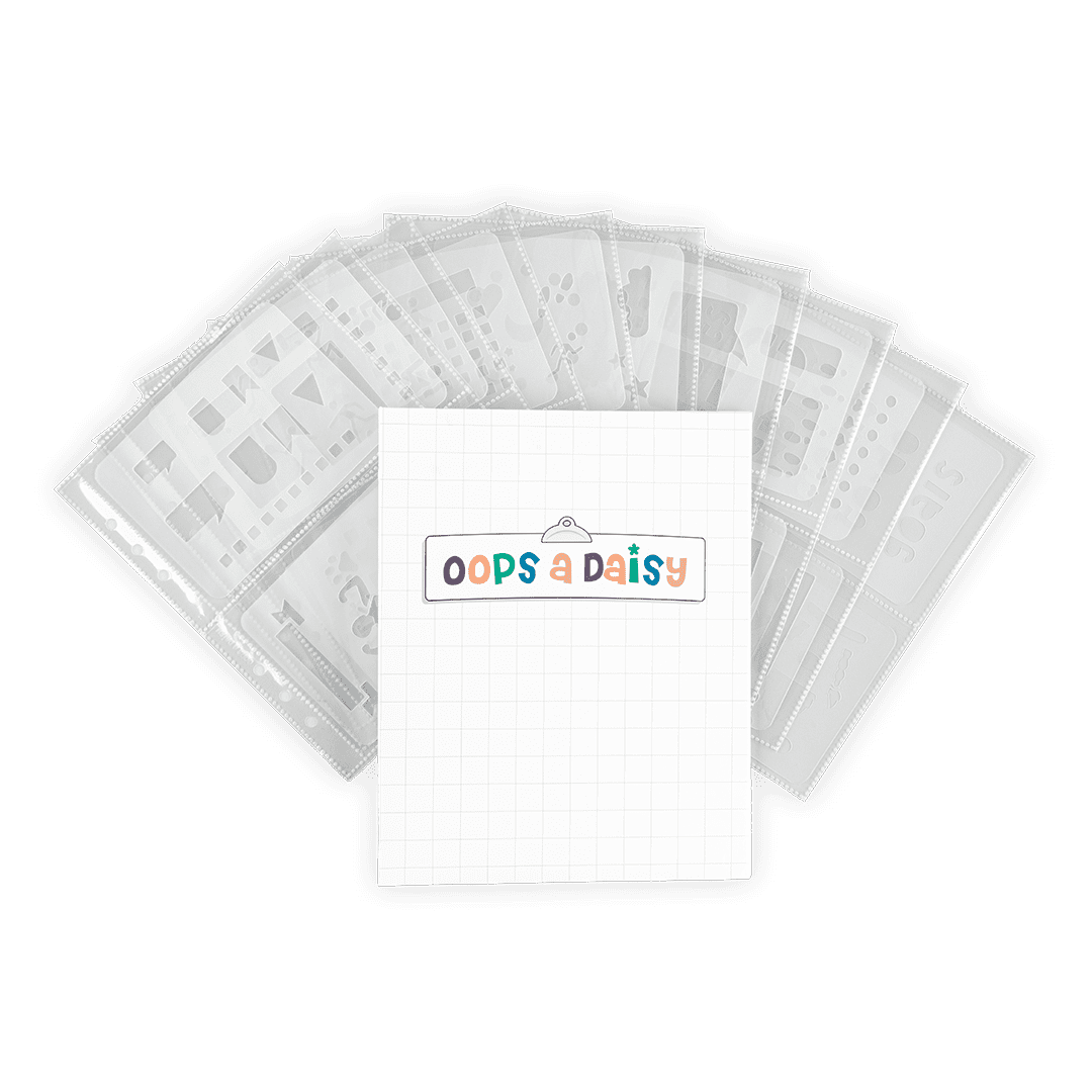 We have bundled together all 24* of our Pocket Stencils in a fabulous Oops a Daisy Storage Binder.