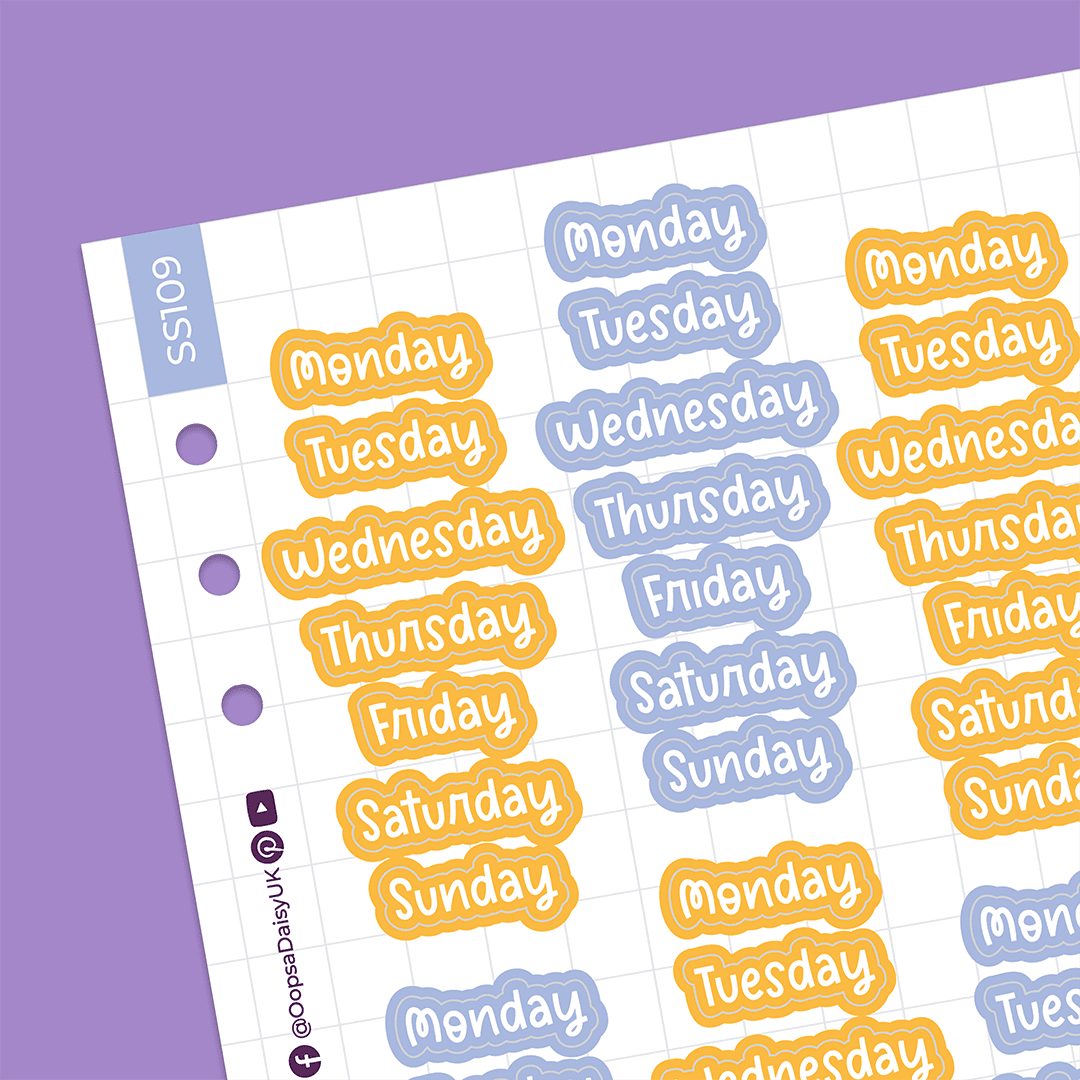 Make quick work of your journal spreads with these daily header stickers. Featuring our super cute ‘Blossom’ font, in a bright and cheerful colour palette, these cute lettering stickers work add a spring touch to your daily, weekly or monthly layouts.