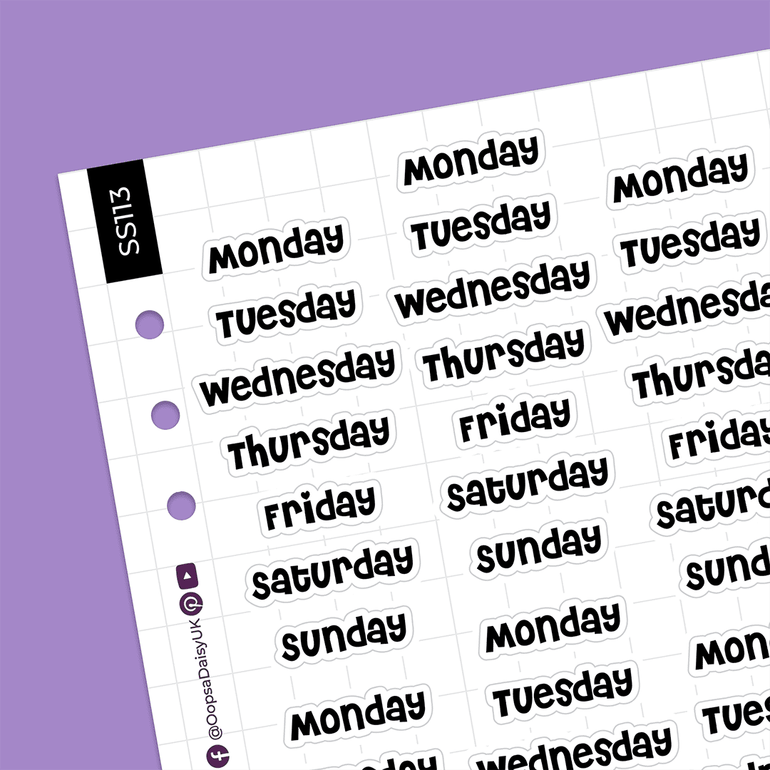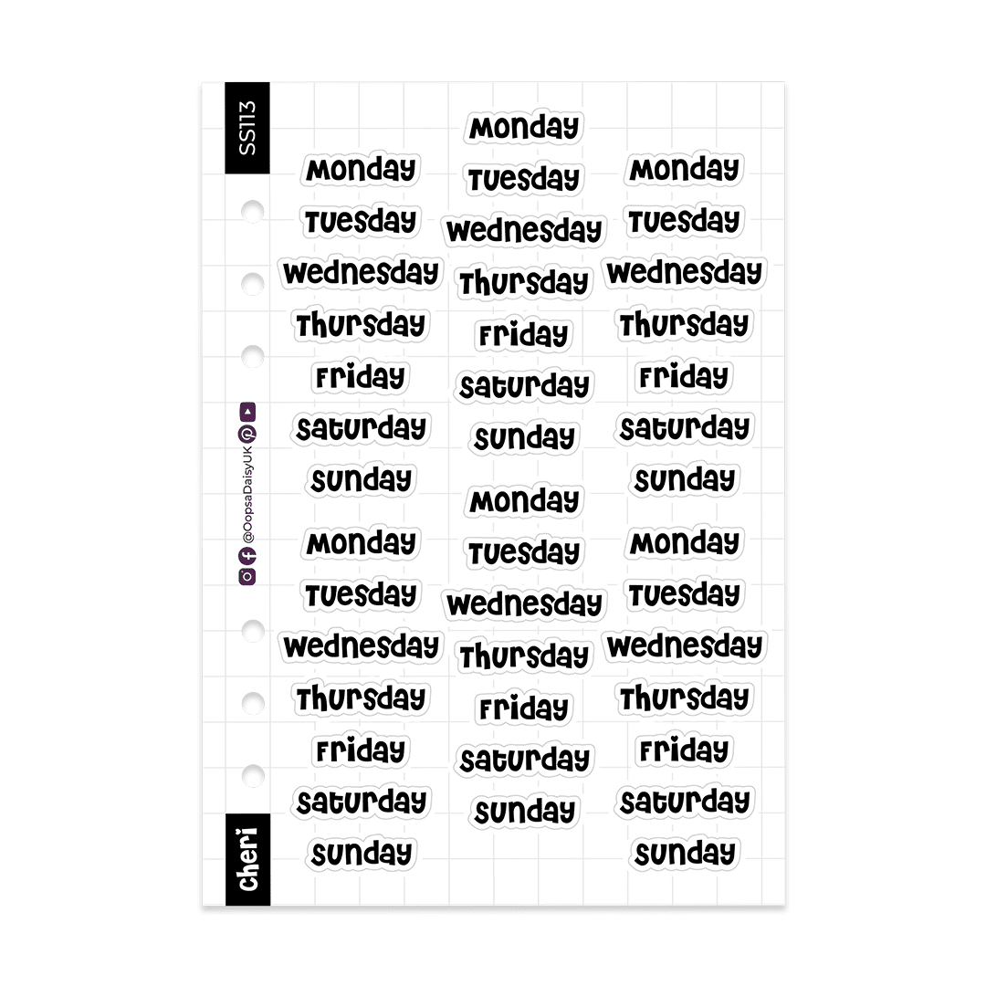 Make quick work of your journal spreads with these daily header stickers. Featuring our playful ‘Cheri’ font, these bold black lettering stickers work with any theme or colour scheme.