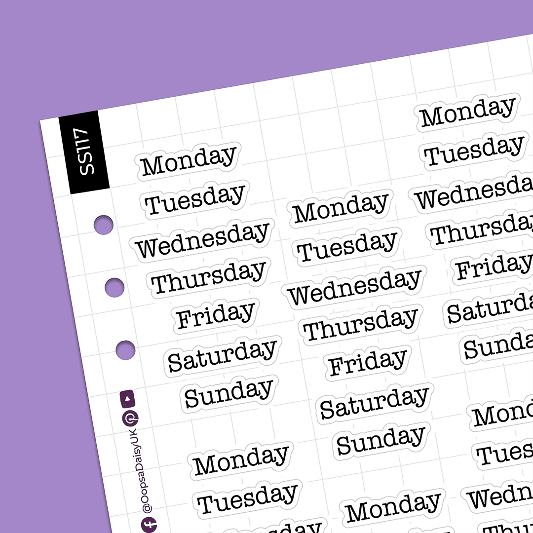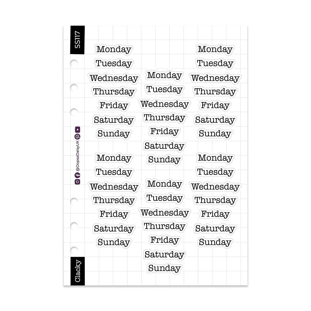 Make quick work of your journal spreads with these daily header stickers. Featuring our typewriter style ‘Clacky’ font, these classic black lettering stickers work with any theme or colour scheme, and are perfect for book lovers and reading journals.