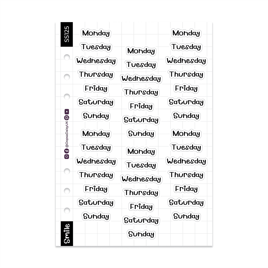Make quick work of your journal spreads with these daily header stickers. Featuring our ‘Smile’ font, these neutral black stickers work with any theme or colour scheme.