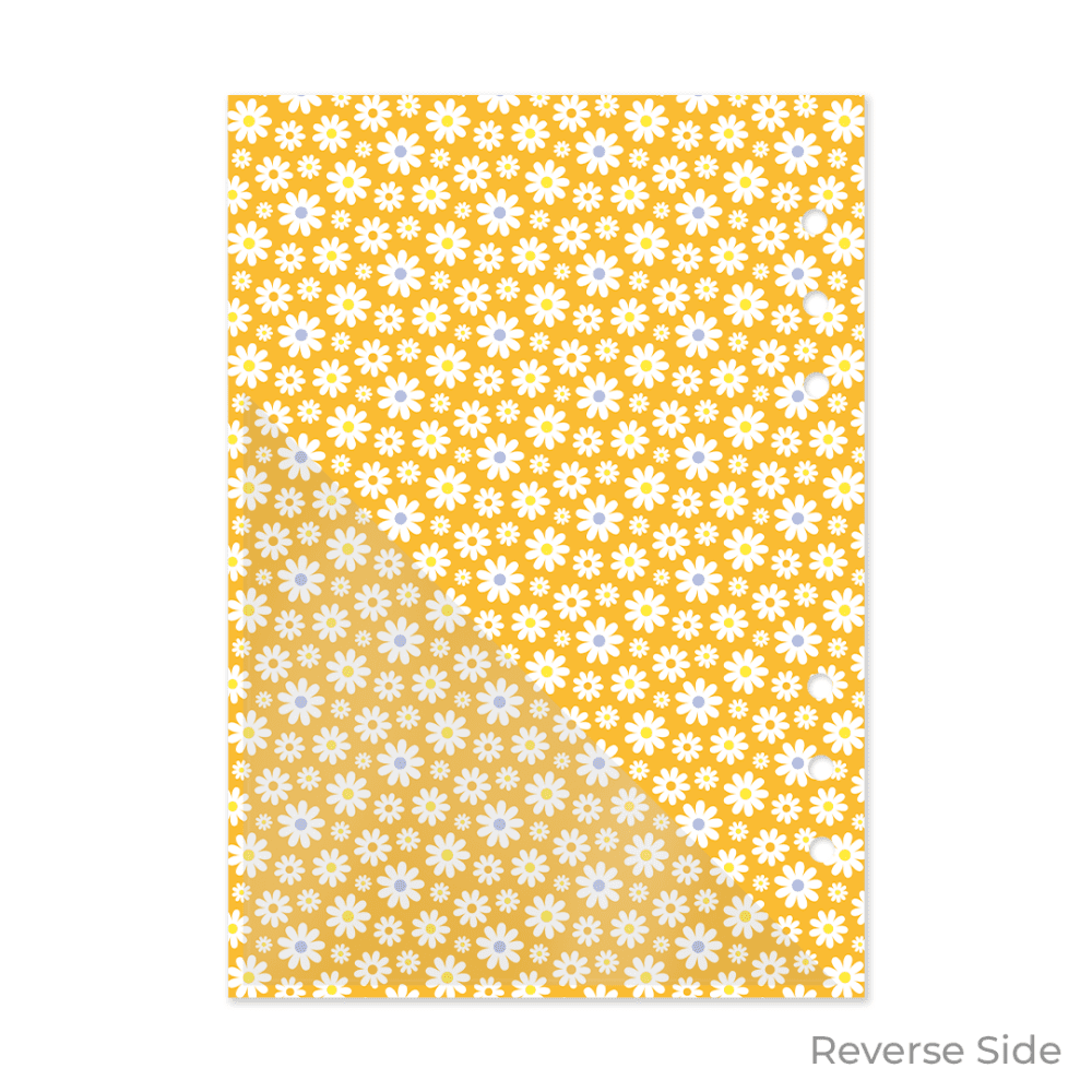 The inside front cover features a cute matching pattern, with a clear corner pocket – Great for tucking notes, sticker sheets, receipts, etc.