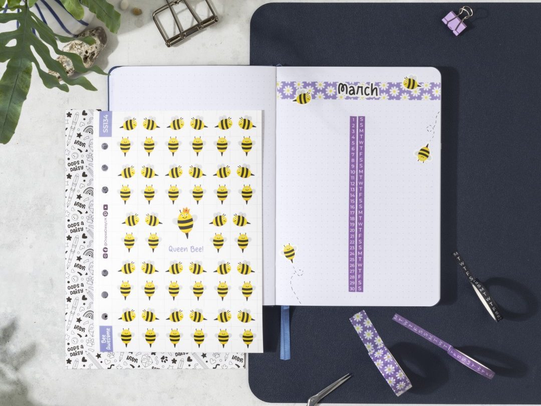Our functional tapes line up perfectly with a 5mm dot grid, and make it super quick and easy to add a monthly spread or tracker to your journal.