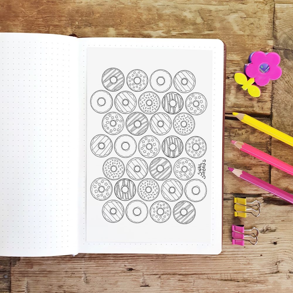 Track your habits or mood by colouring a doughnut each day, or just colour the whole thing for a bit of mindfulness and me-time! Lots of months available – just choose from the drop-down menu.