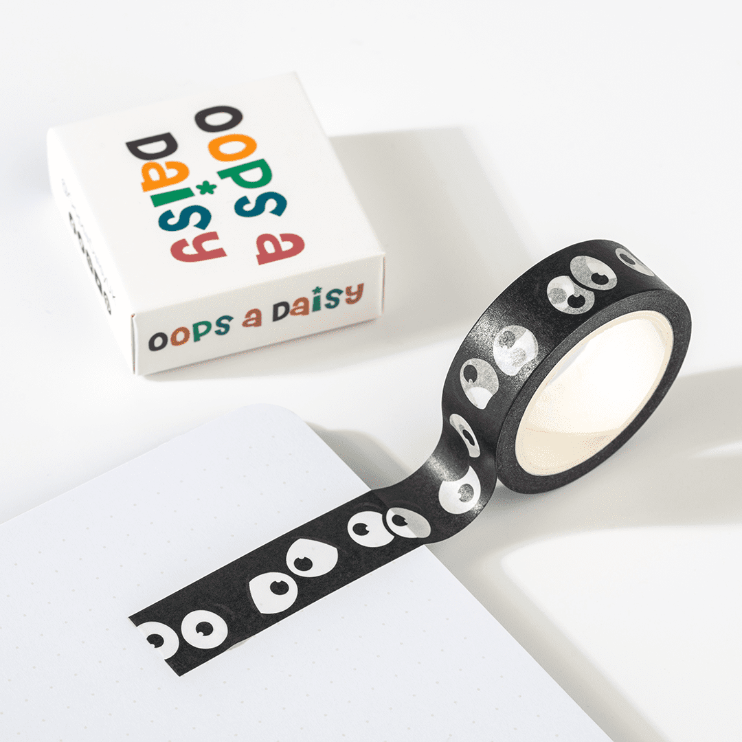 Add a fun, spooky touch to your journal or planner with this Eyeballs Washi Tape. Featuring playful white eyeballs scattered across a black background, this design is perfect for Halloween spreads, gothic themes, or quirky, alternative layouts.