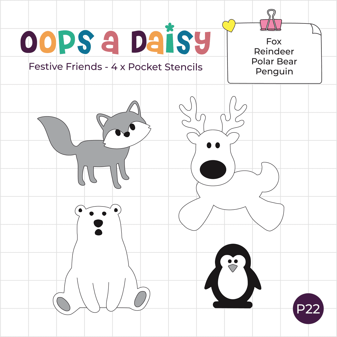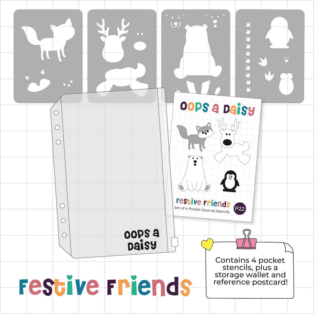 This Festive Friends set includes four pocket-sized stencils featuring four festive animal friends to adorn your journal during the winter period.
