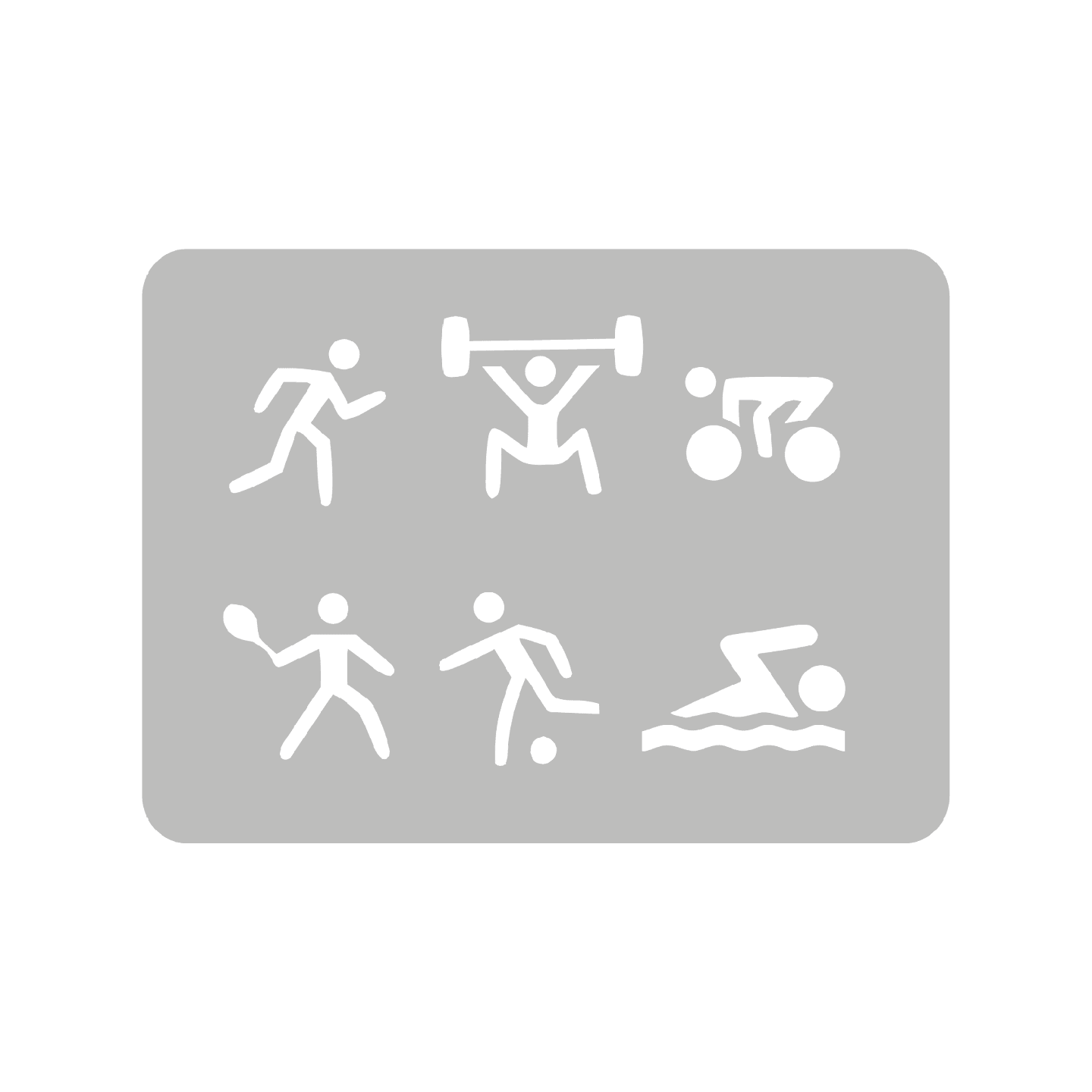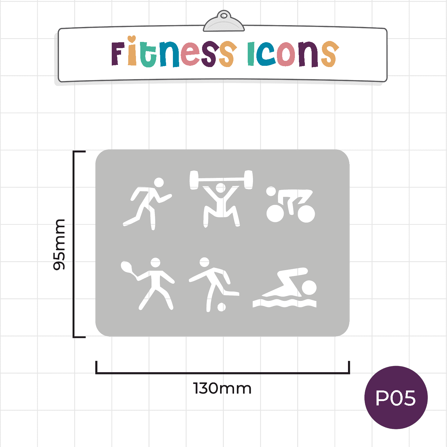 This pocket stencil features a range of fun fitness and sports icons to record your exercise and fitness goals in your journal. Great for tracking running, swimming. cycling, going to the gym and more.