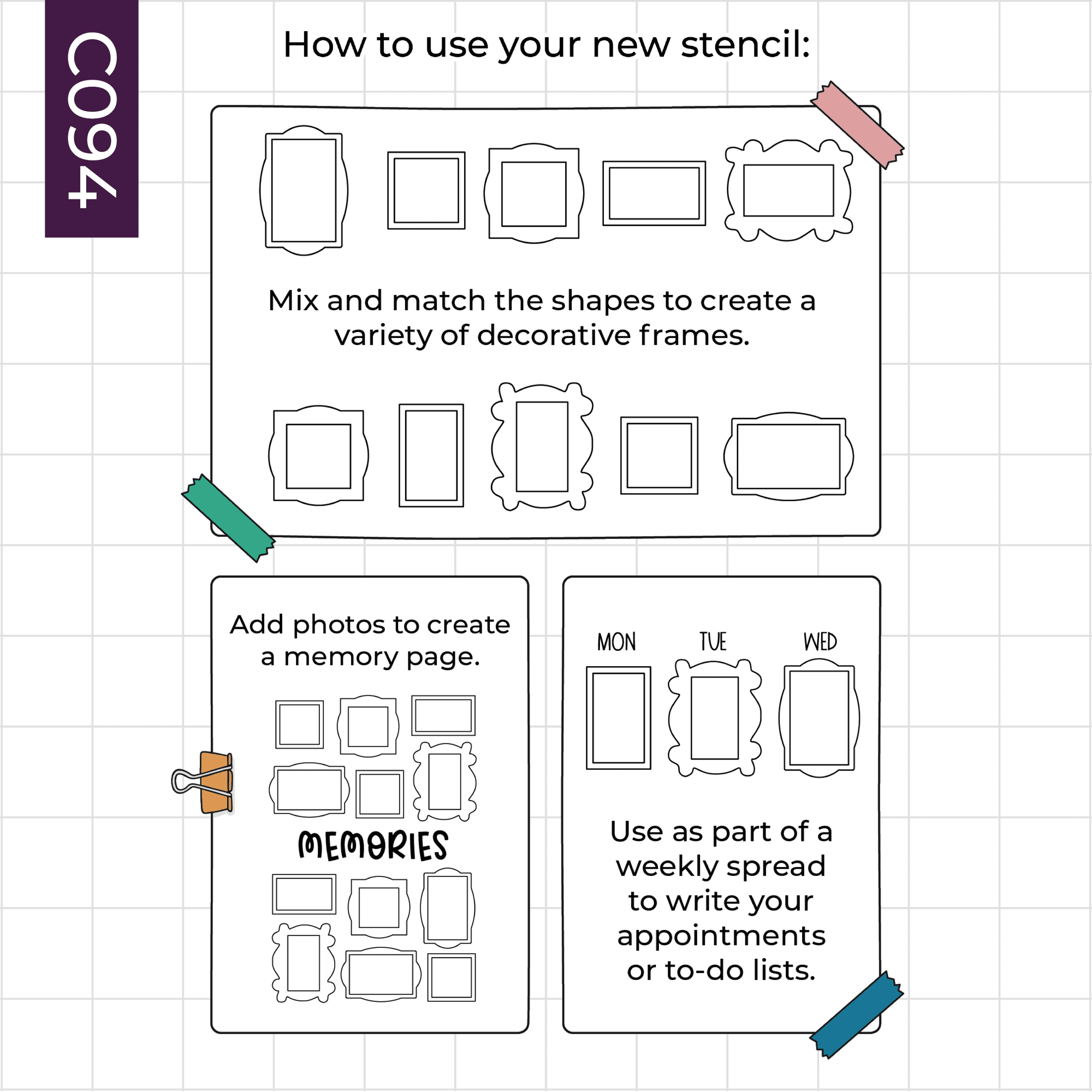 Each Classic Stencil contain multiple shapes and elements to create a variety of layouts and decorations, and can be used with any size journal or planner - The only limit is your imagination!