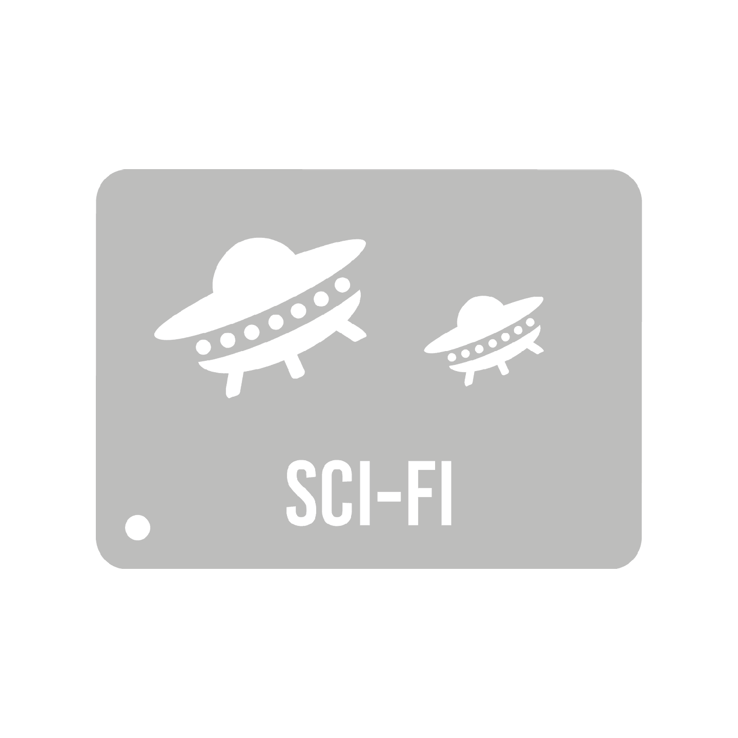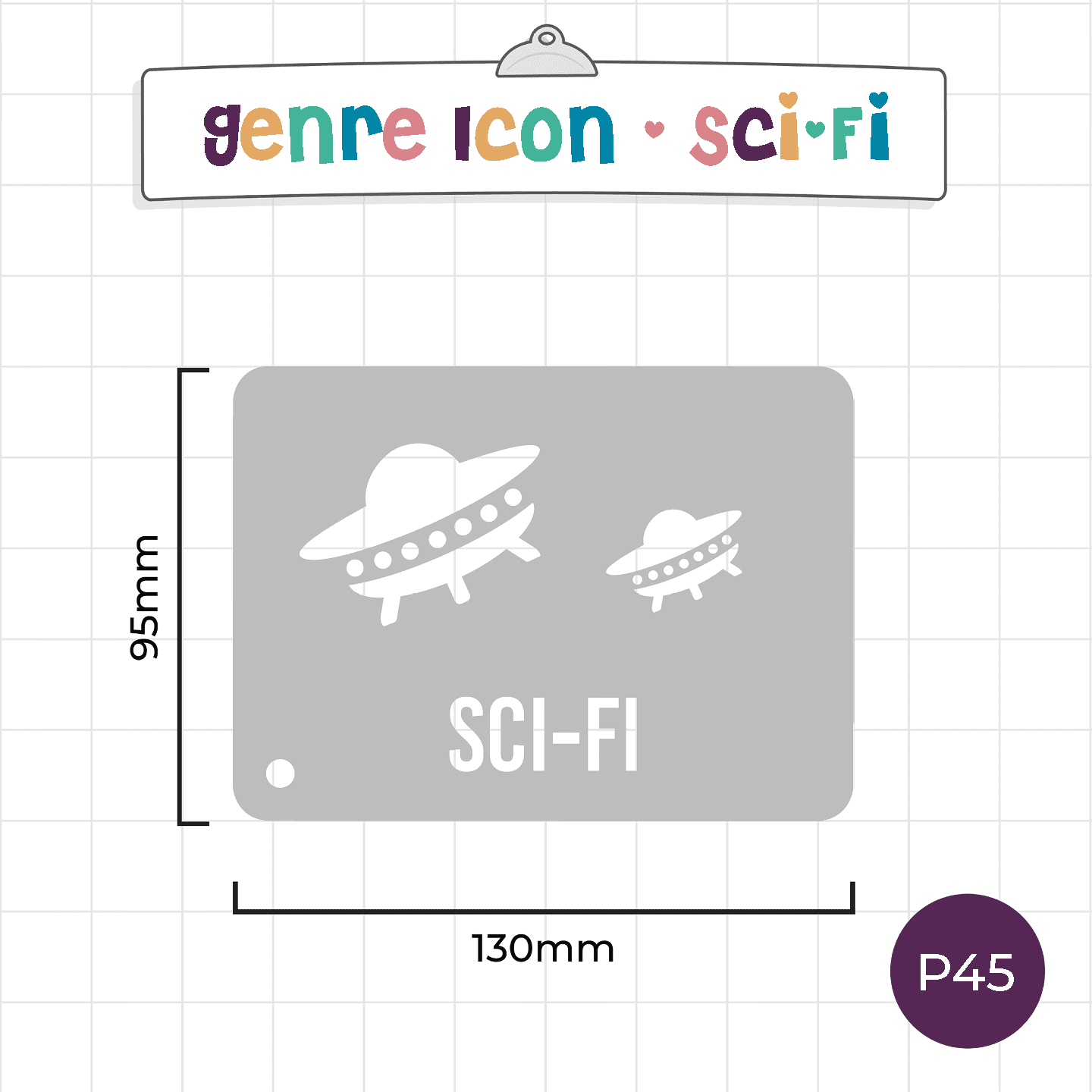 This ‘Sci-Fi’ stencil works in tandem with our other ‘Genre Icon’ stencils to help you add genre categories to film, book, TV, and media journals.