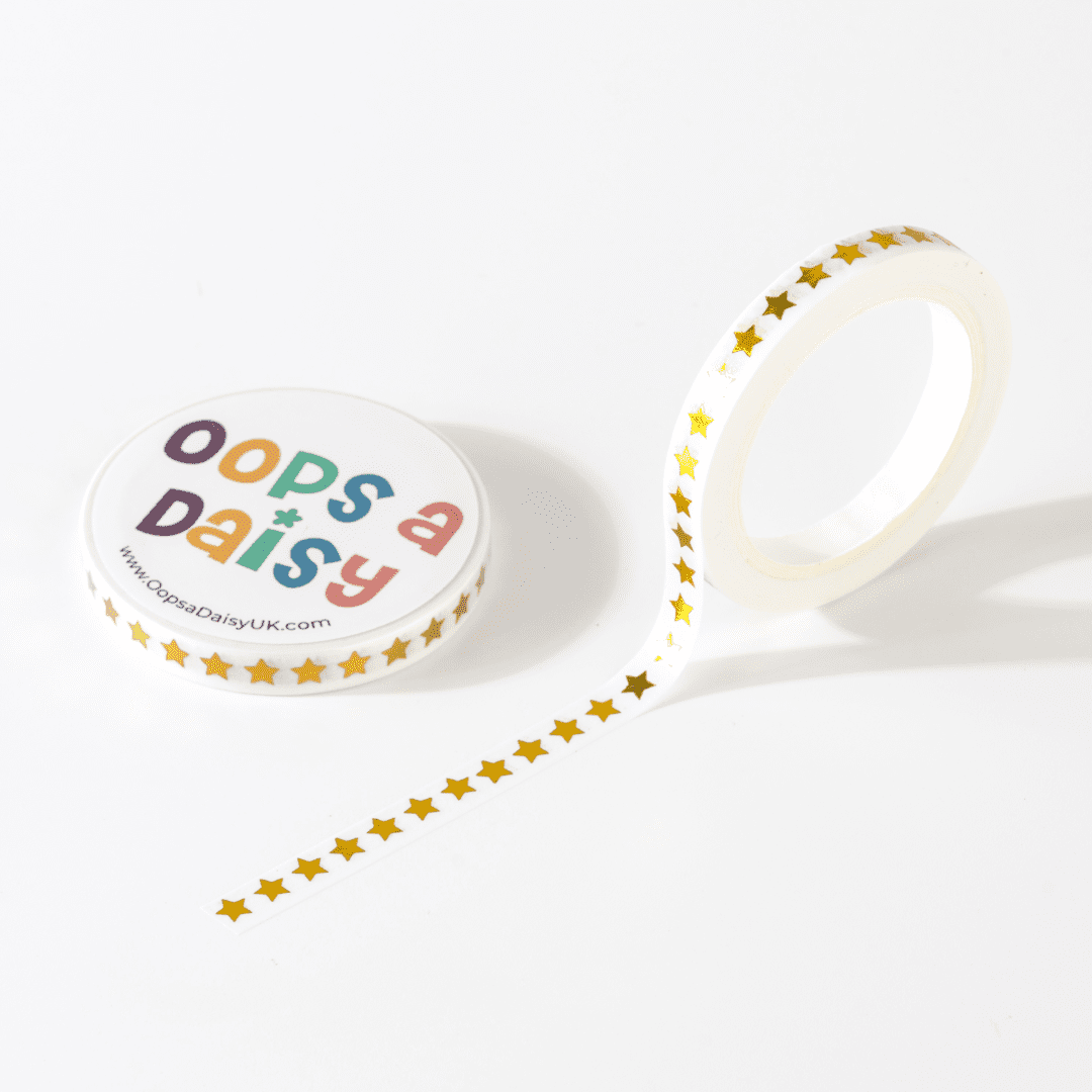 This Washi tape features gold foil stars spaced perfectly to fit a 5mm dot grid. It can be used for book and film reviews, to do lists, or just for decoration!
