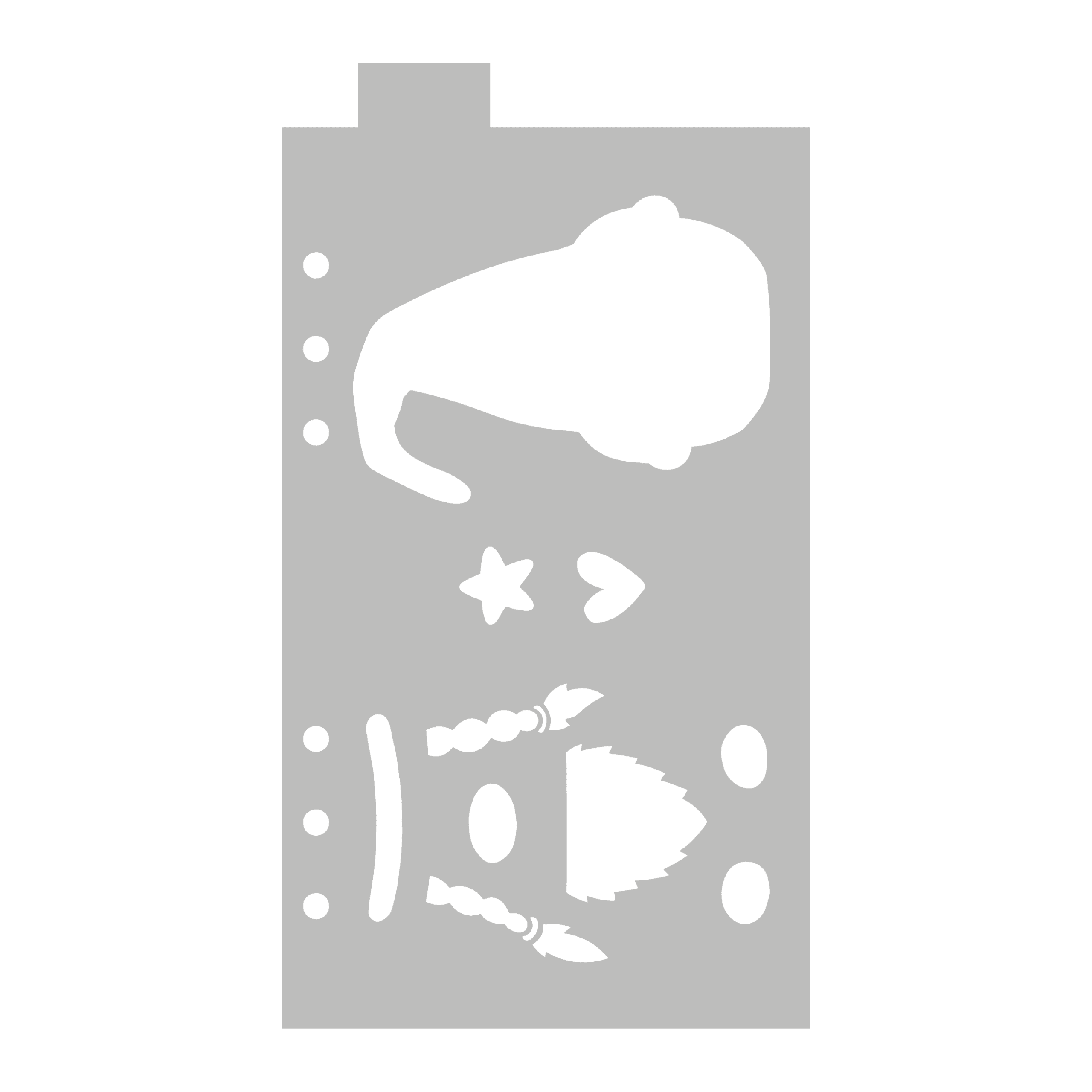 Gonks are for life… Not just for Christmas. This stencil contains elements to help you draw different Gonk characters in your journal – Simply mix and match the beard, hair braids, and hat decorations!