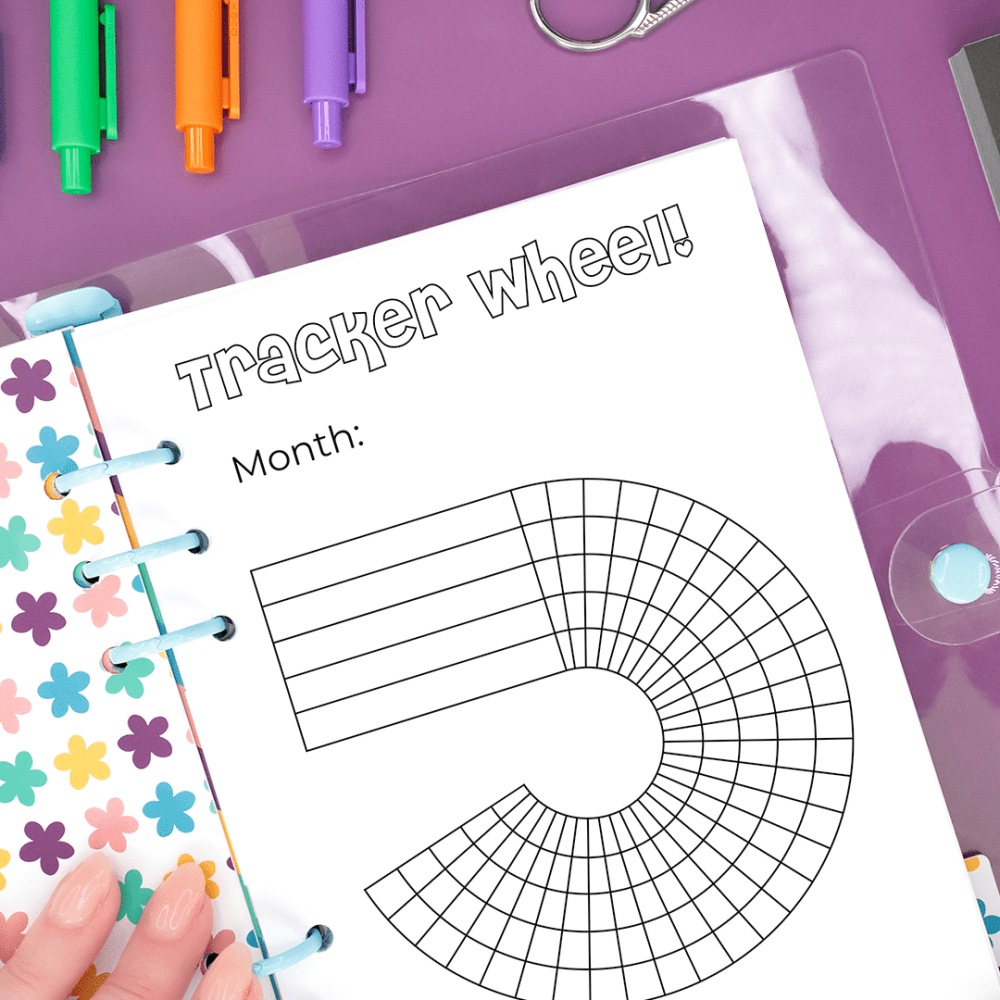 Our habit wheel planner inserts can be used to track absolutely anything! Simply label each row with the task or thing you want to track, then colour in each segment when you complete it! There’s also space underneath for a key, and a full page of notes to go alongside your tracker.