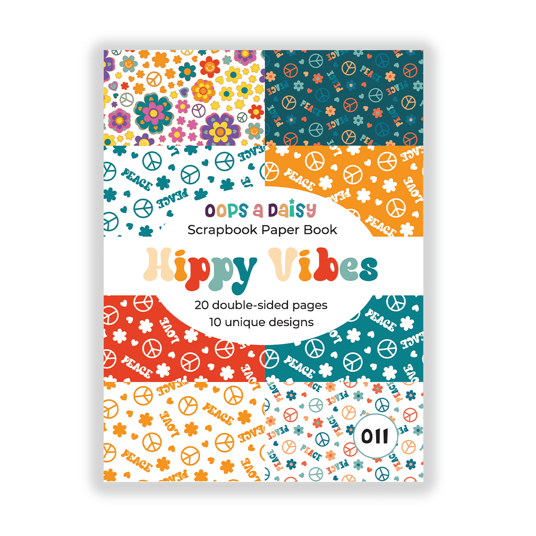 Softcover scrapbook paper book featuring a variety of 60s inspired hippy patterns, perfect for your craft projects and journal spreads.