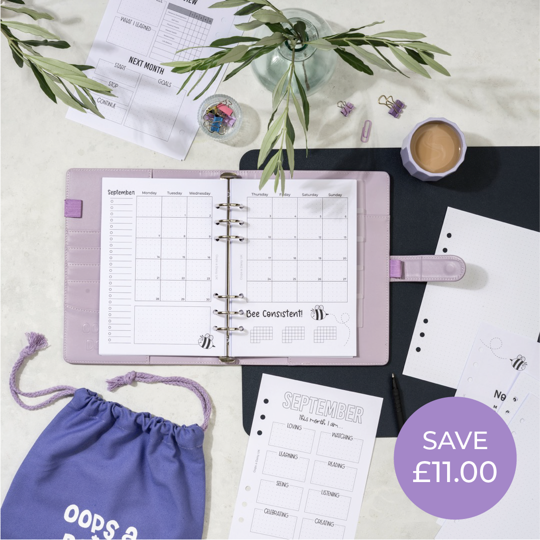 Perfect for anyone who wants the creative flexibility of bullet journaling paired with the structure and convenience of a pre-printed diary, this luxury bundle lets you mix and match your favourite designs to create a planner that truly works for you.