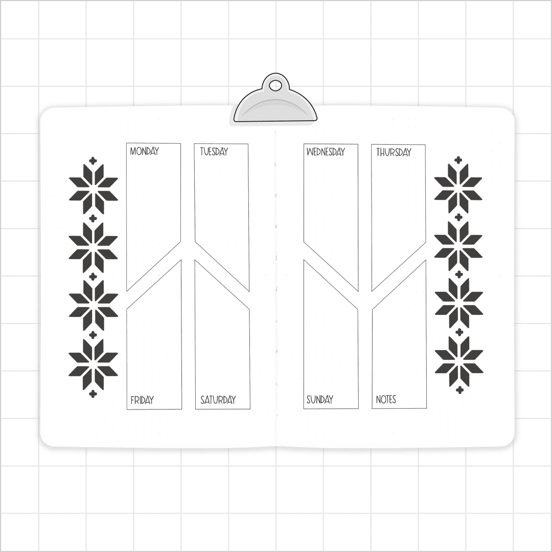 This journal stencil helps you to create fun Scandinavian or Hygge-themed weekly spreads quickly and easily.