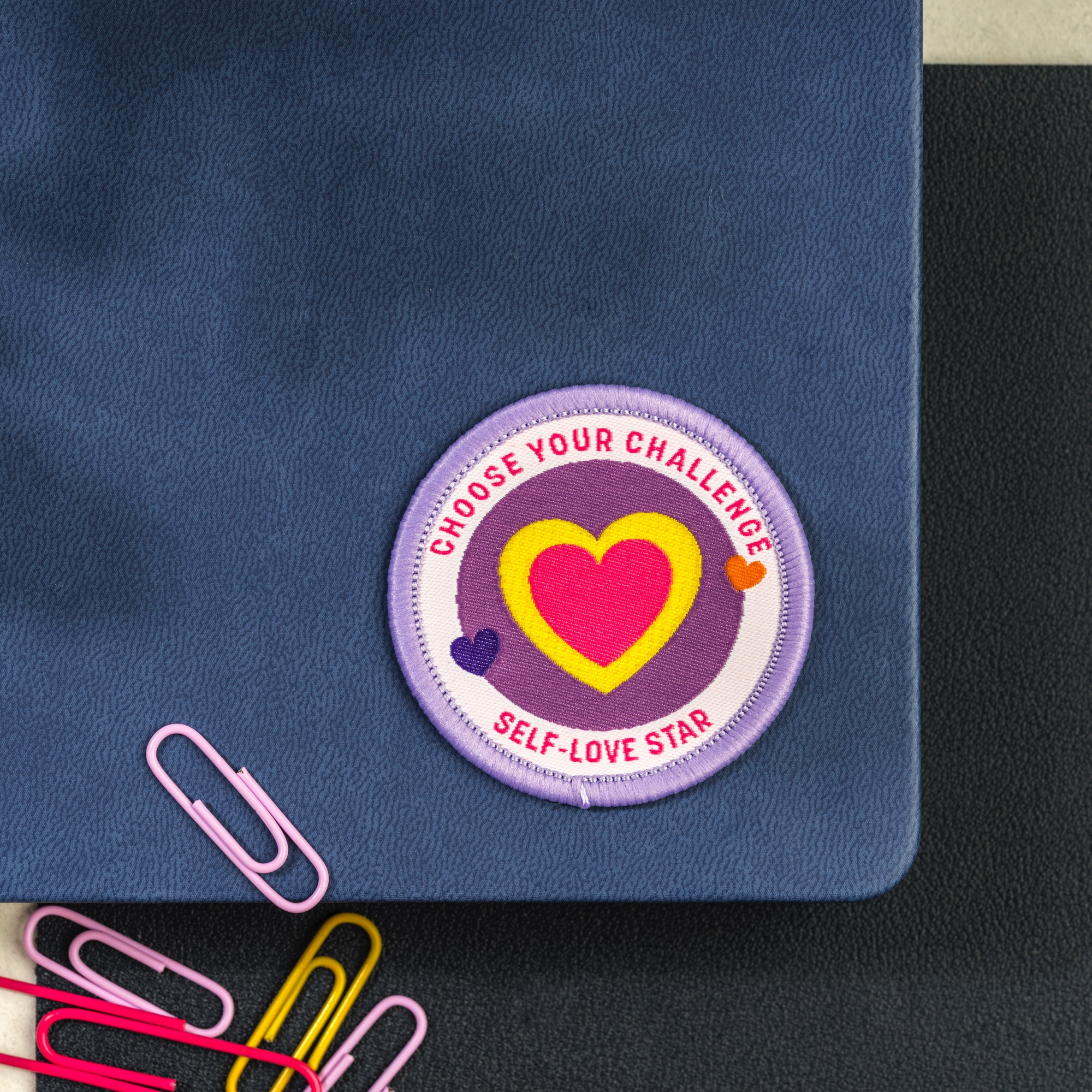 In each challenge kit you will find a gorgeous embroidered badge. With a self-adhesive backing, they make a great decoration for your journal.