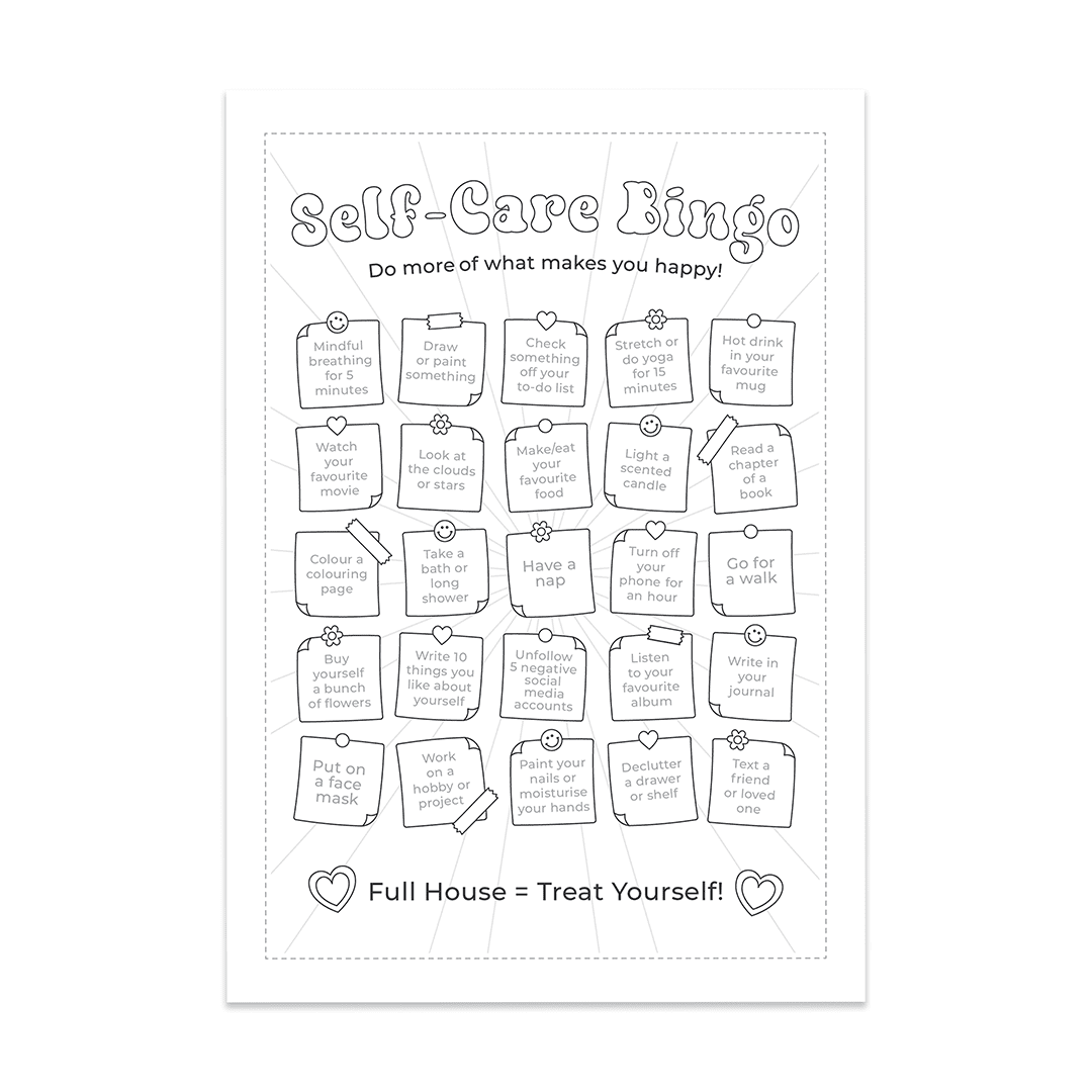 Complete 30 days of self-love journaling and complete self-care bingo.