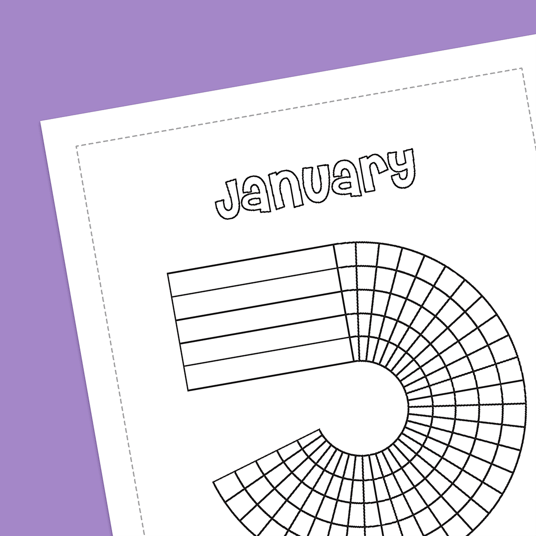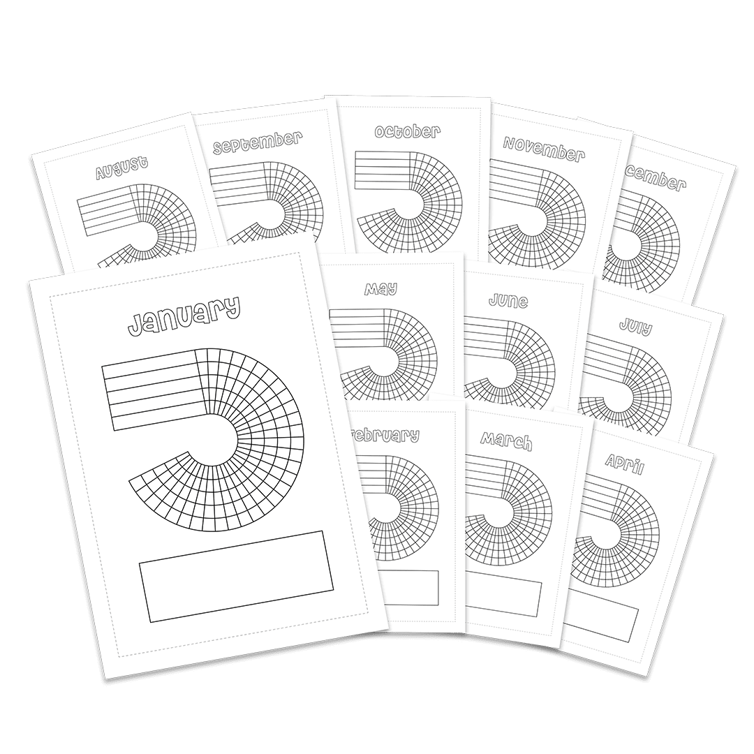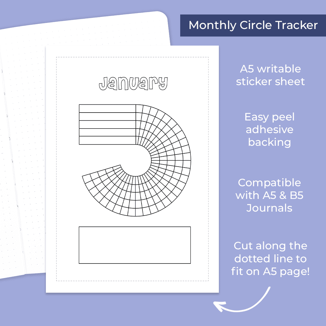 This set of 12 Monthly Circle Tracker full-page journal stickers brings a bold and creative start to each month of the year with their playful circular tracker design. Each segment represents a day, giving you a fun way to colour-code, mark habits, track moods, or highlight meaningful moments throughout the month. The clean, modern layout keeps things visually striking while still being easy to use.
