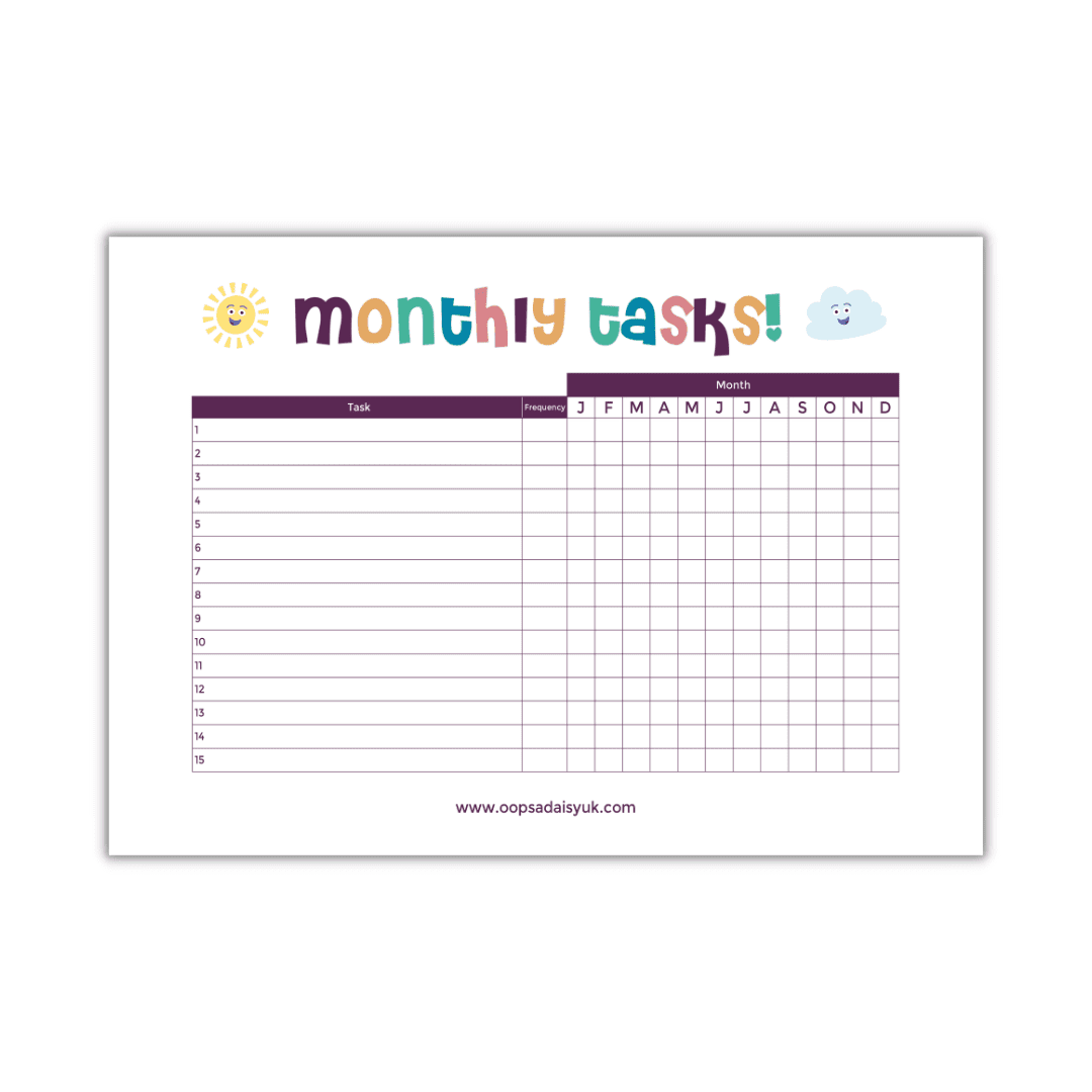 Our Monthly task tracker is downloadable as a high quality PDF for you to print at home.