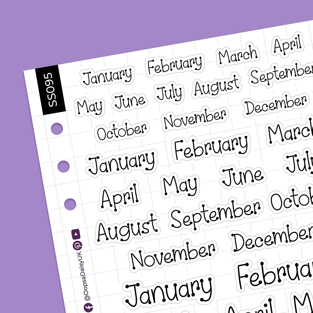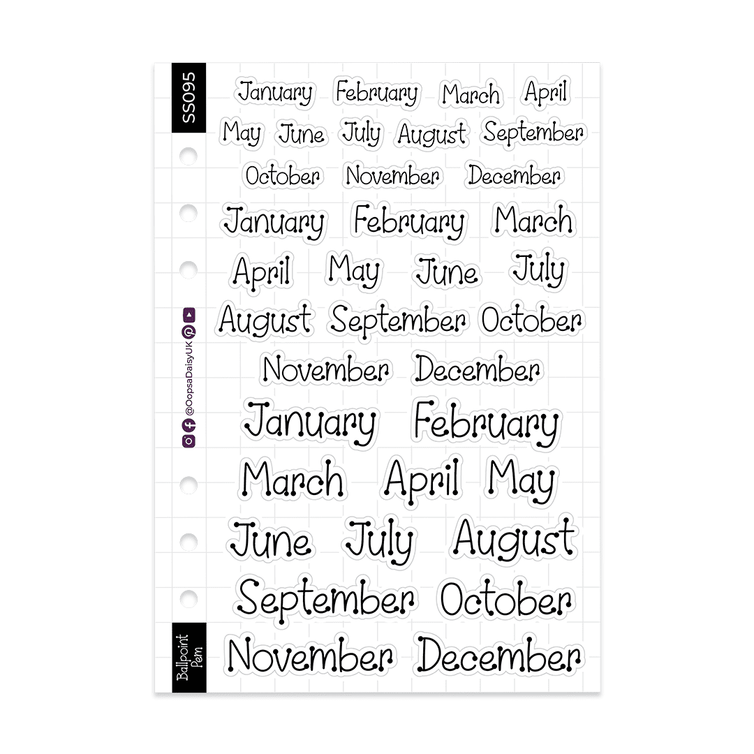 Make quick work of your journal spreads with these monthly header stickers. Featuring our handwritten style ‘Ballpoint Pen’ font, these monochrome black stickers work with any theme or colour scheme and are perfect for adding the month to your daily, weekly or monthly journal spreads.