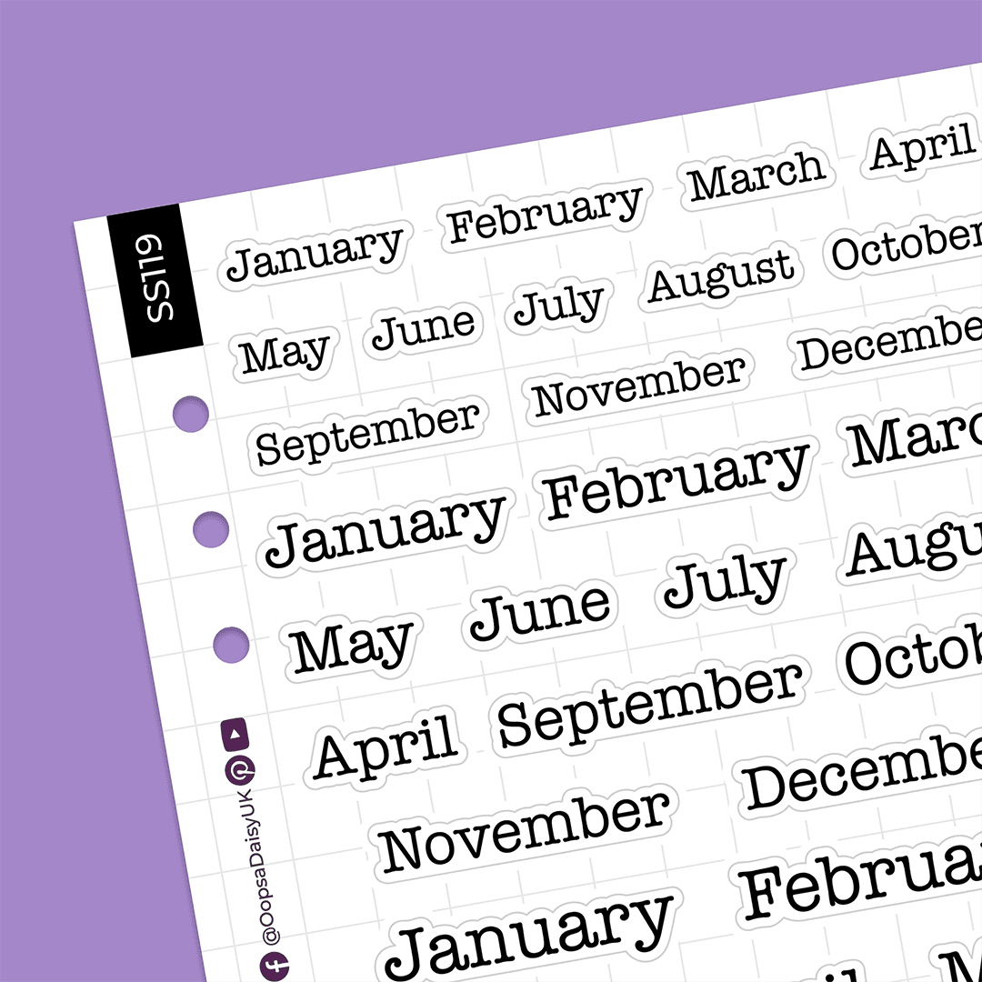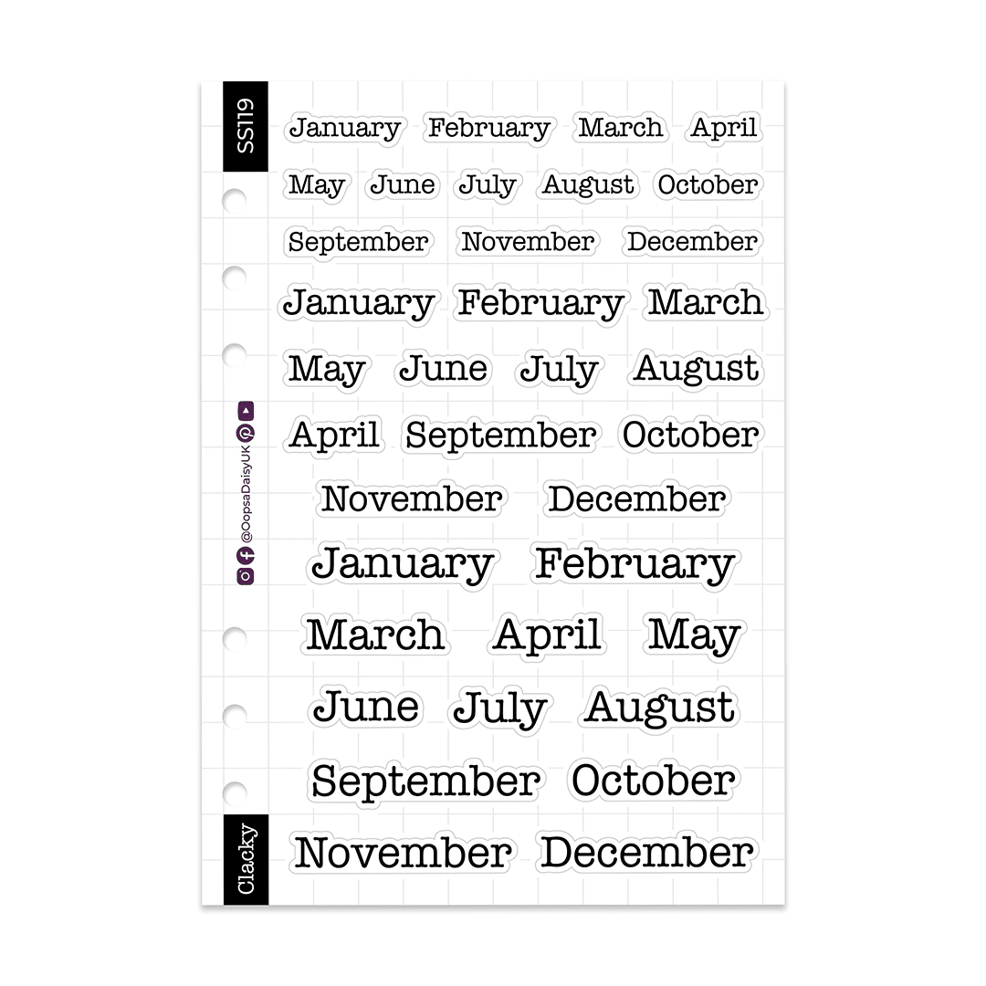 Make quick work of your journal spreads with these monthly header stickers. Featuring our typewriter style ‘Clacky’ font, these classic black lettering stickers work with any theme or colour scheme, and are perfect for book lovers and reading journals.