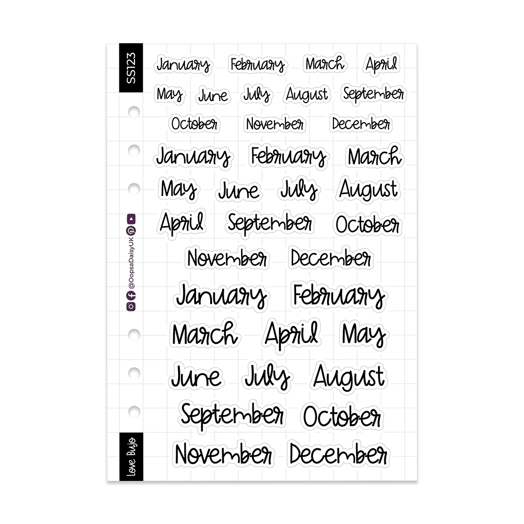 Make quick work of your journal spreads with these monthly header stickers. Featuring our handwritten style ‘Love Bujo’ font, this fun black lettering is perfect for adding the month to your daily, weekly or monthly layouts.