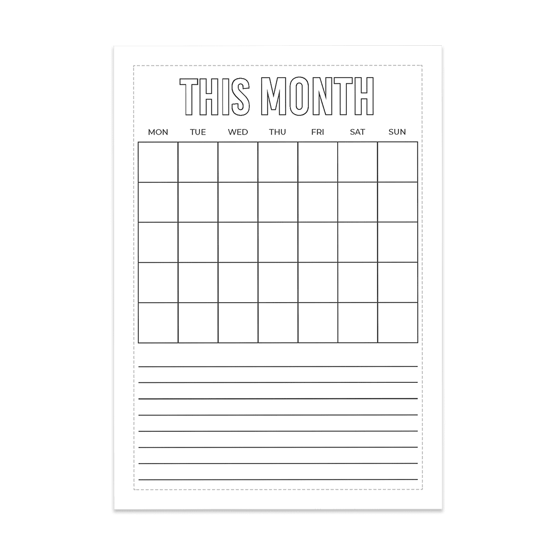 This undated Monday start Monthly full-page journal sticker gives you a clean, customisable monthly overview that slips neatly into any planner or journal. The undated grid lets you set up your month exactly the way you like, whether you prefer to highlight key events, mark appointments, track habits, or decorate as you go. With the weekdays already labelled from Monday to Sunday, it’s quick to fill in and easy to tailor for any month of the year.
