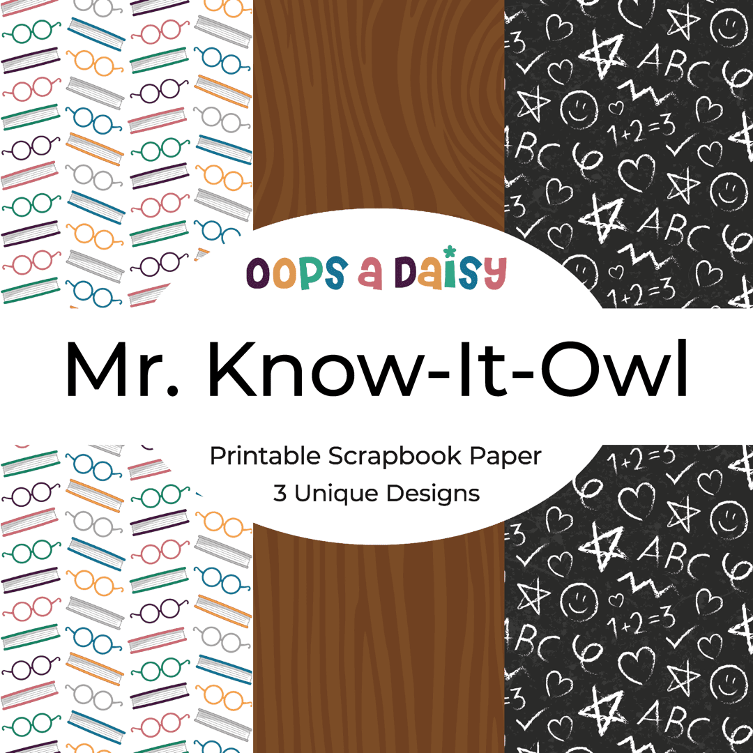 MR. KNOW-IT-OWL – PATTERNED SCRAPBOOK PAPER – DIGITAL DOWNLOAD