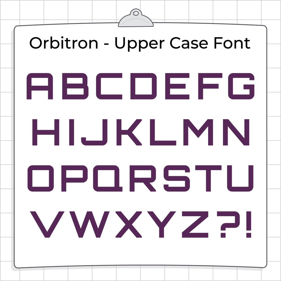 These Orbitron Font Journal Stencils feature a bold, futuristic lettering style with clean geometric shapes, perfect for modern journal and planner pages. The sharp, structured letterforms make this 2cm (approx) font ideal for tech-inspired spreads, trackers, and layouts that need a sleek, contemporary look.