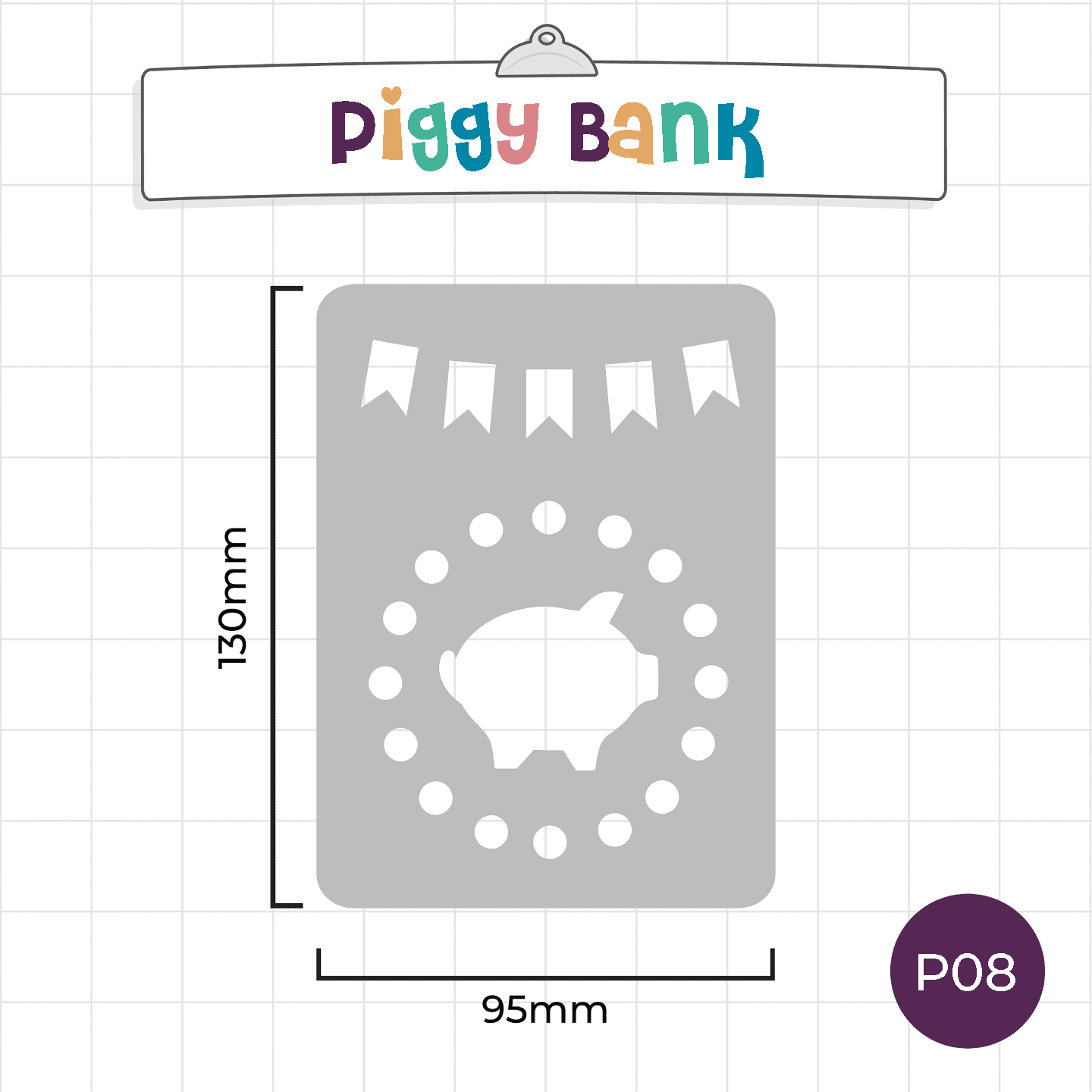 This pocket stencil features a piggy bank icon with coins to help you track your savings, spending and general finances in your journal.