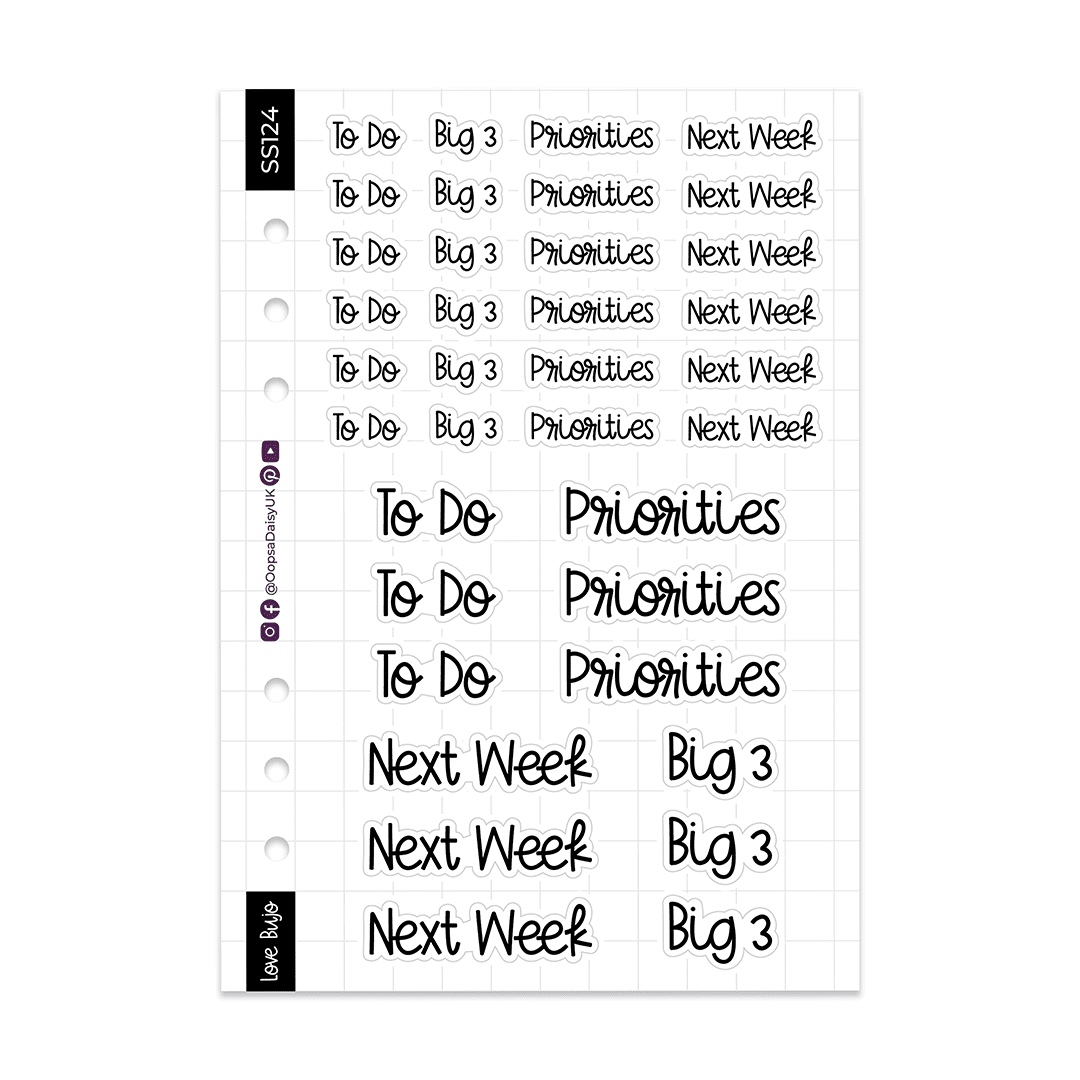 Productivity Headers – Love Bujo Font – Monochrome – A5 Sticker Sheet