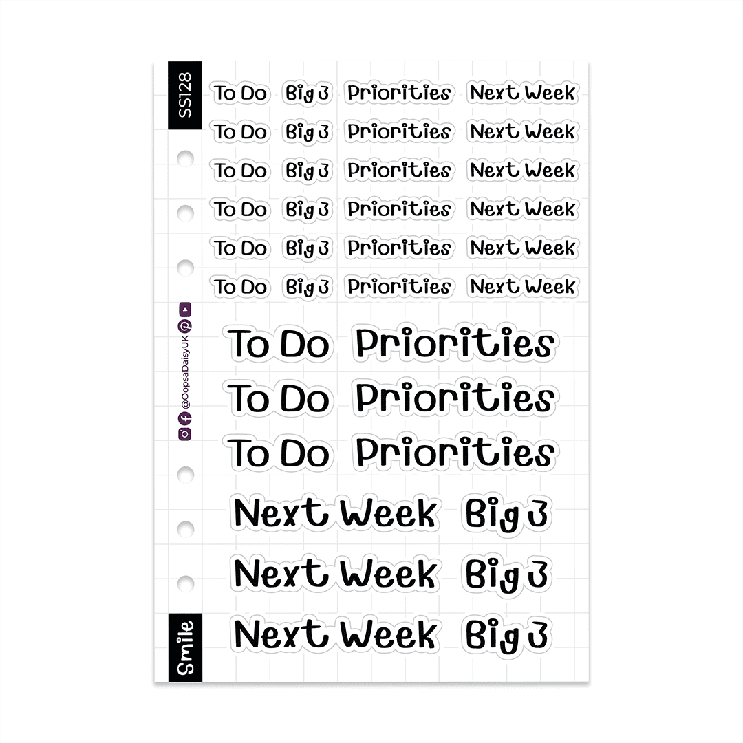 Productivity Headers – Smile Font – A5 Sticker Sheet