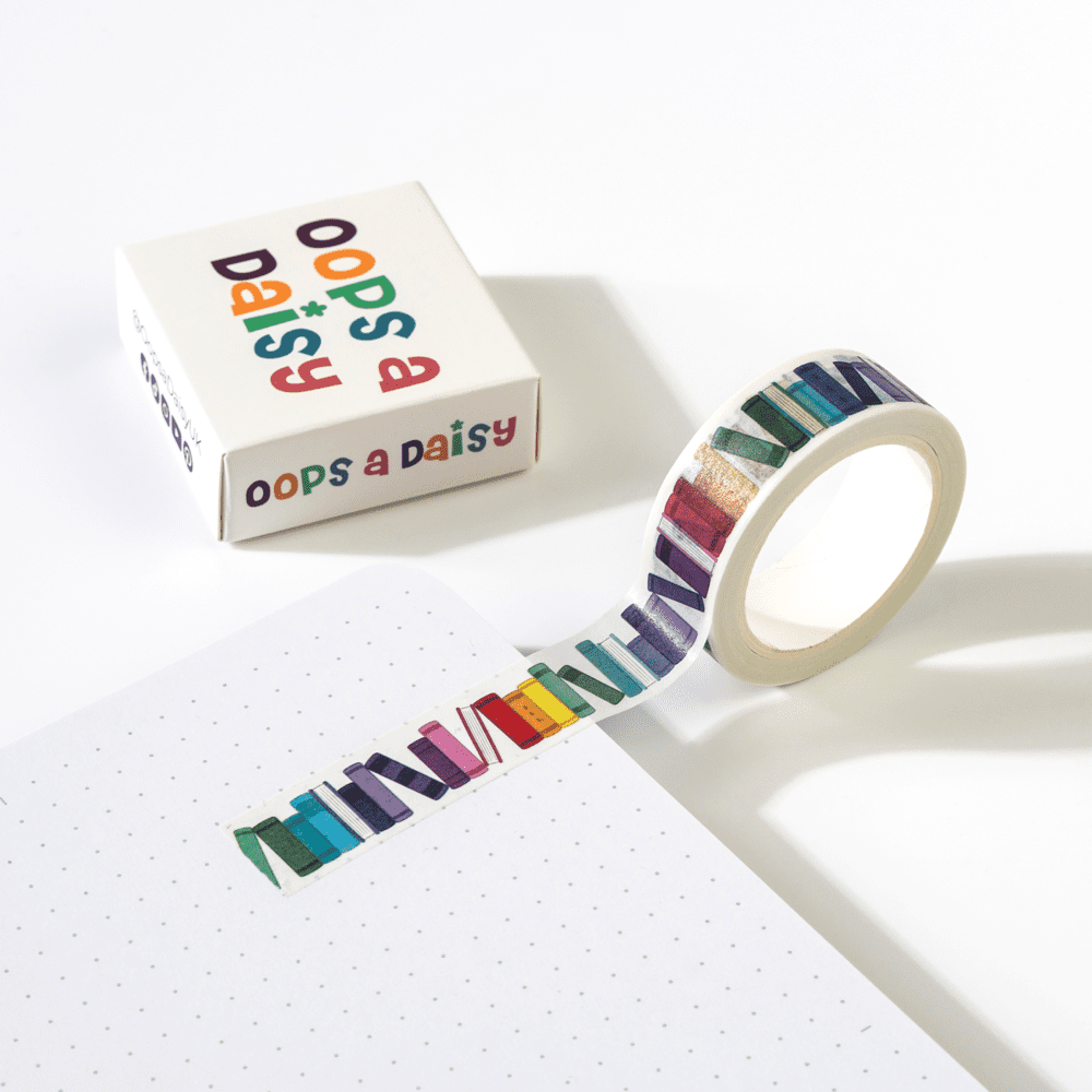 Add a cosy, bookish touch to your journal or planner with this Rainbow Bookshelf Washi Tape.