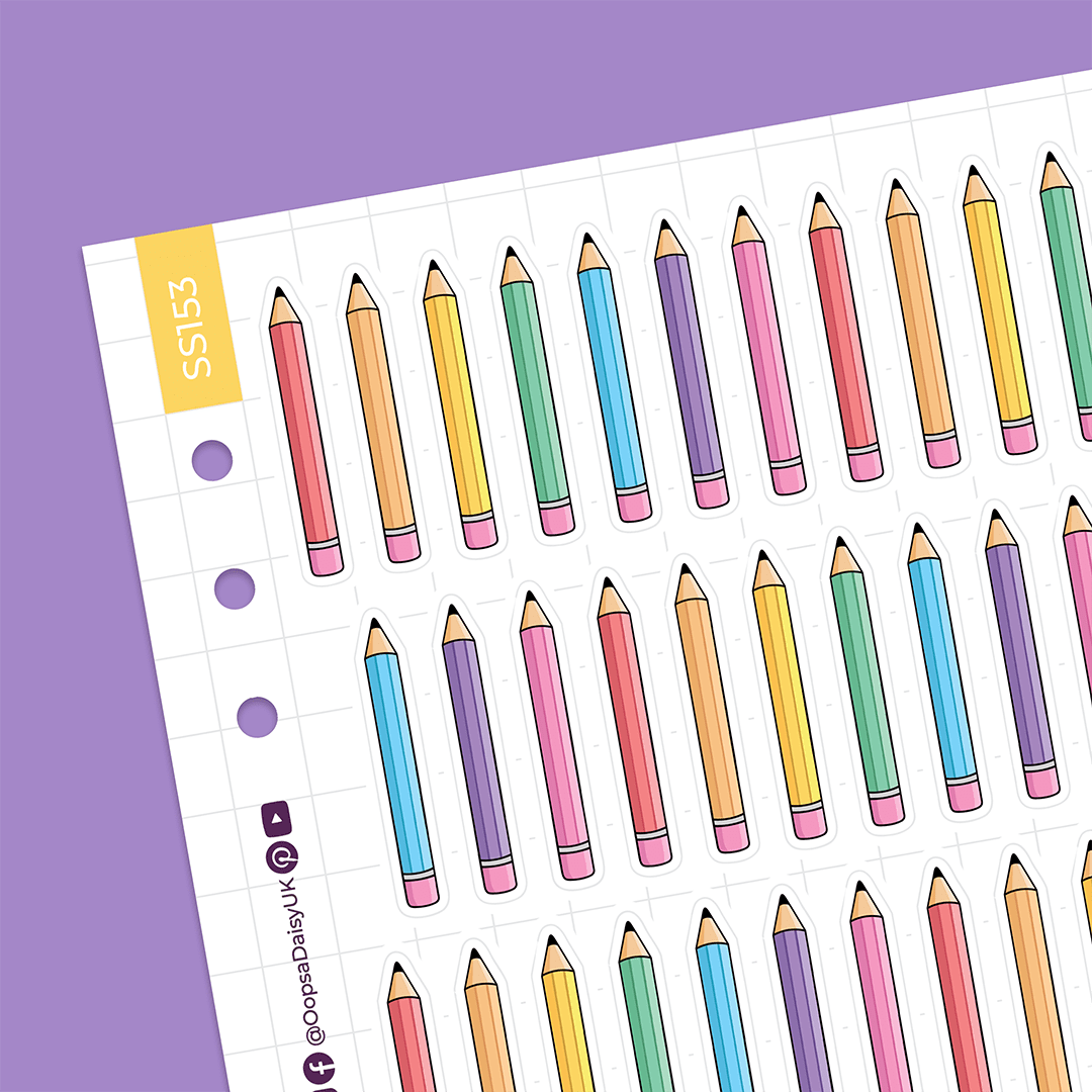 Brighten up your journal or planner with these rainbow pencil stickers. The sheet includes 42 stickers, featuring cute pencils in our signature rainbow colours.