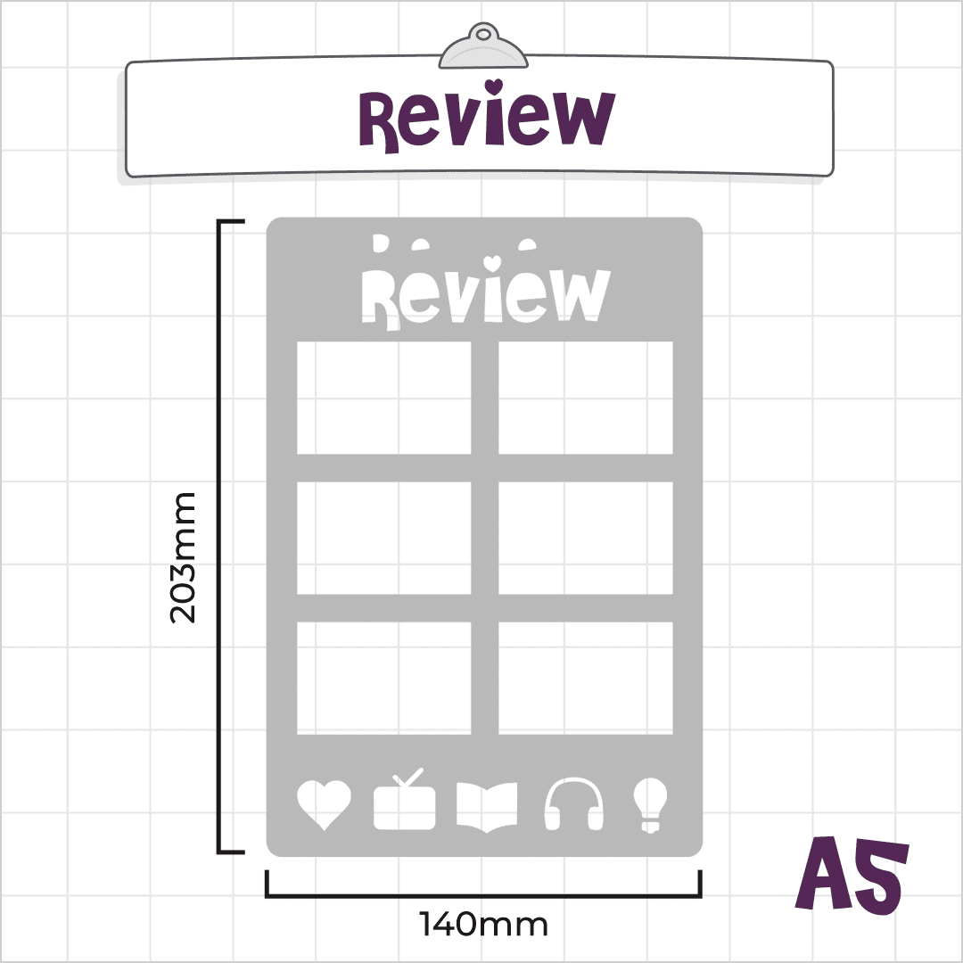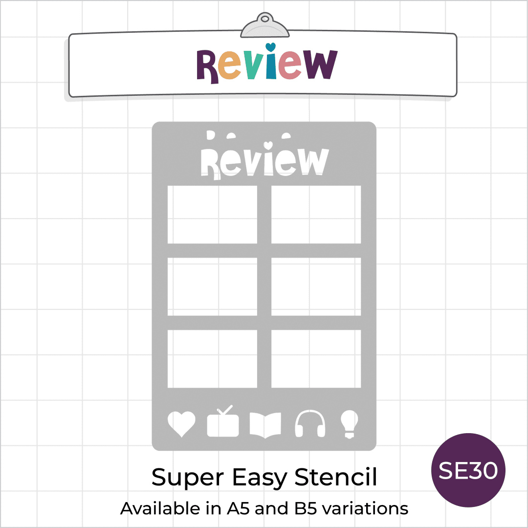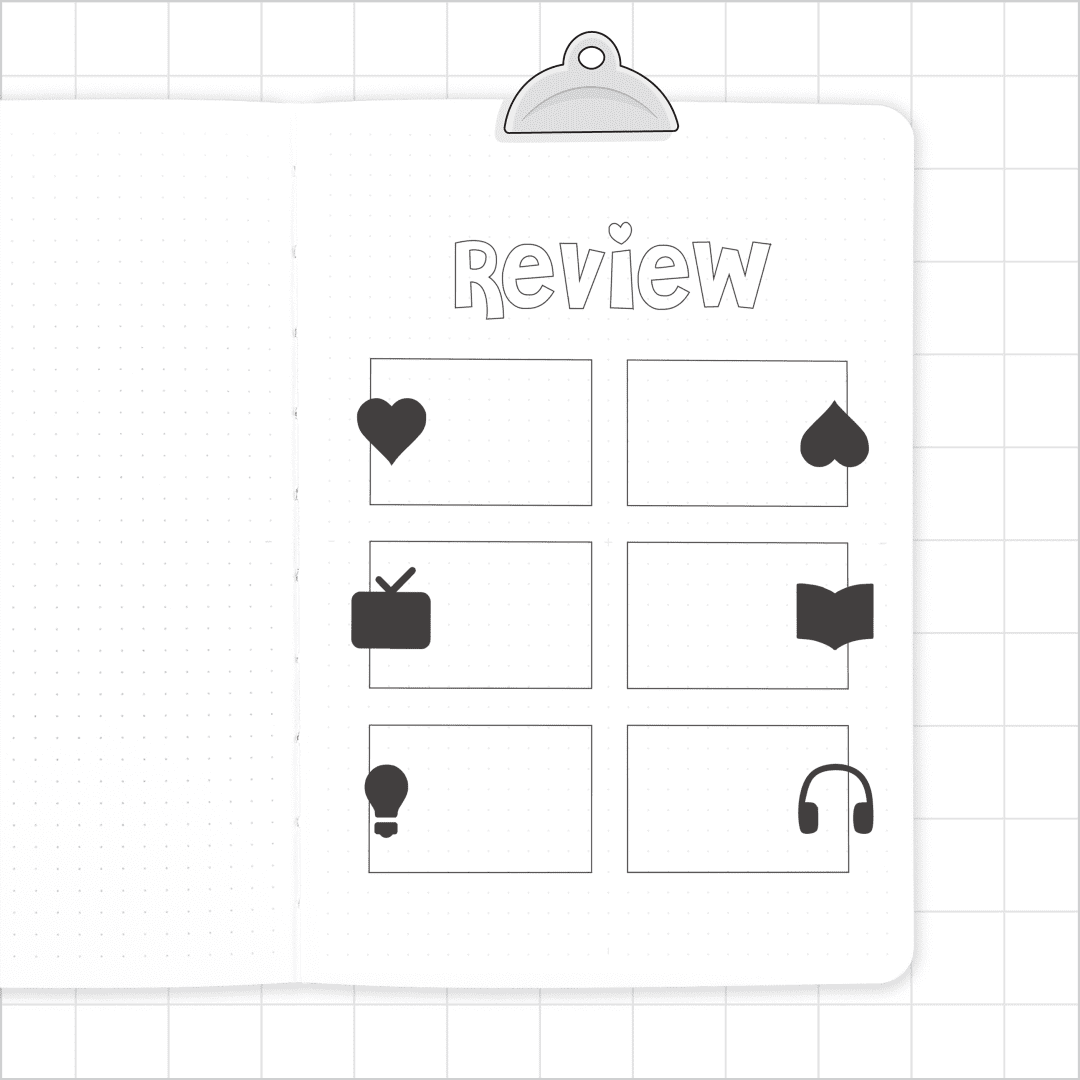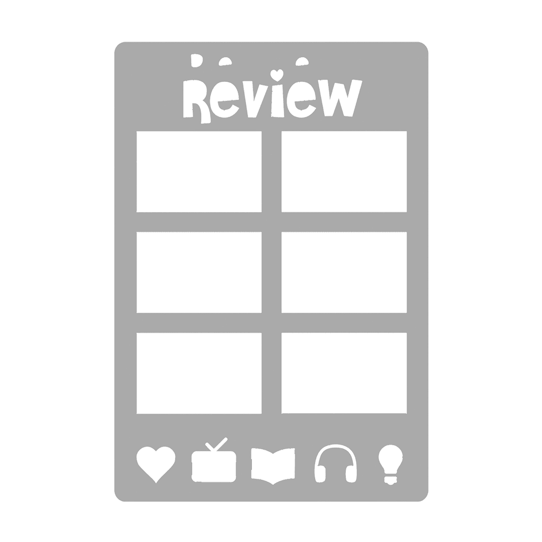 This stencil will help you create a ‘review’ page in your bullet journal. Use it to review your month, films, books, music, or anything you like!