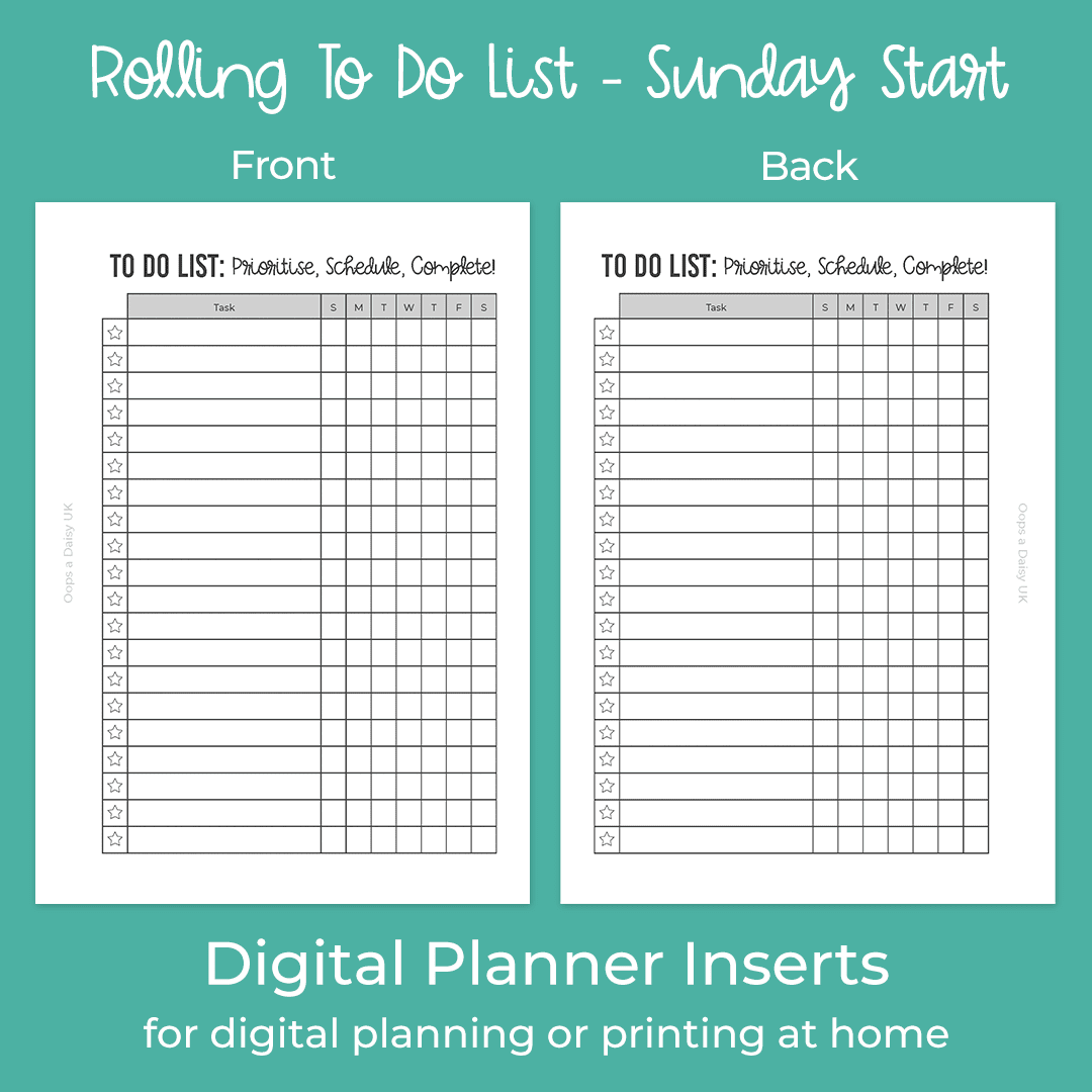 Rolling To Do List – A5 Hybrid Planner Insert – DIGITAL DOWNLOAD