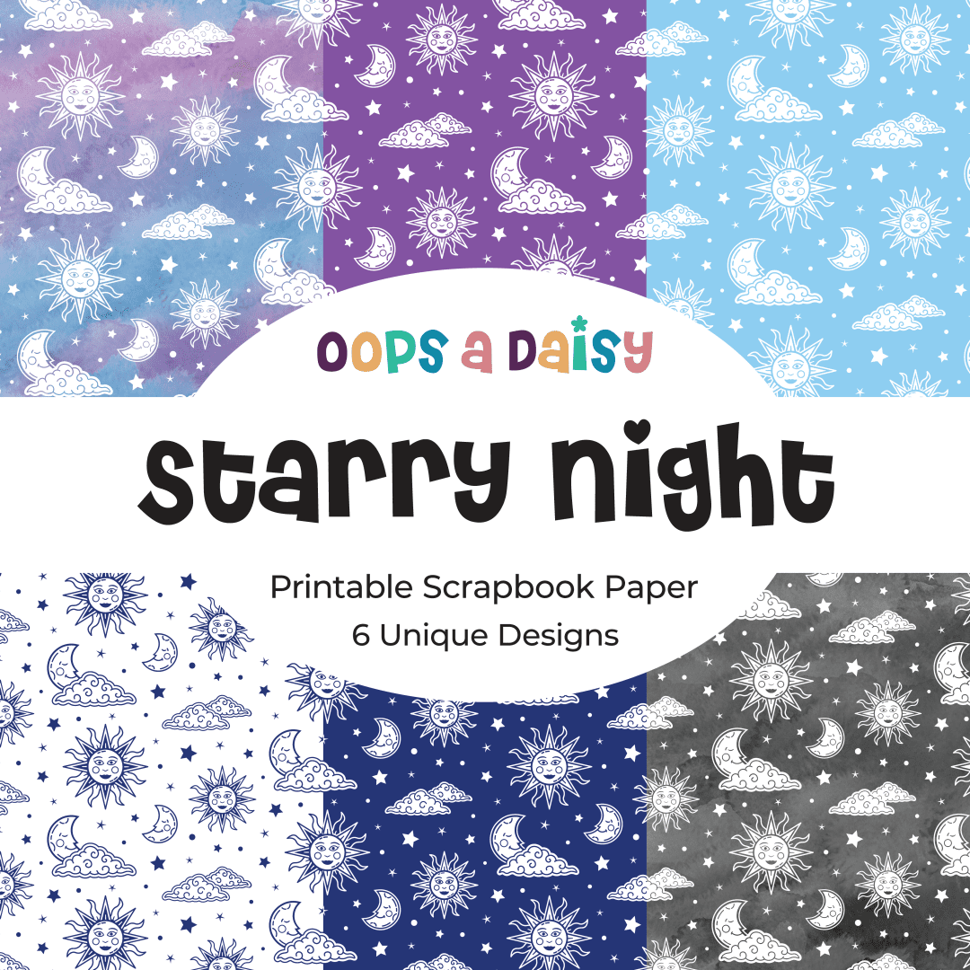 STARRY NIGHT – PATTERNED SCRAPBOOK PAPER – DIGITAL DOWNLOAD