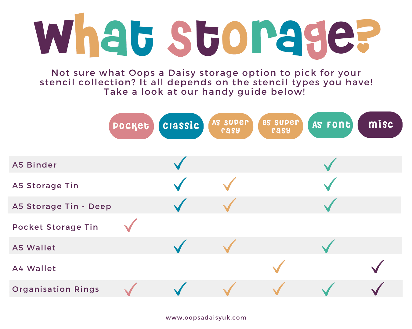 Whether you’ve amassed a huge collection of Oops a Daisy stencils, or just a handful, keeping them organised and easily accessible is a must!