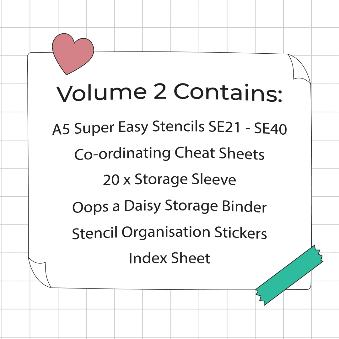 Due to popular demand, we have bundled together 20Â of our individual Super Easy Stencils in a fabulous Oops a Daisy Storage binder, along with Cheat Sheets to help you make the most of your new stencil collection.