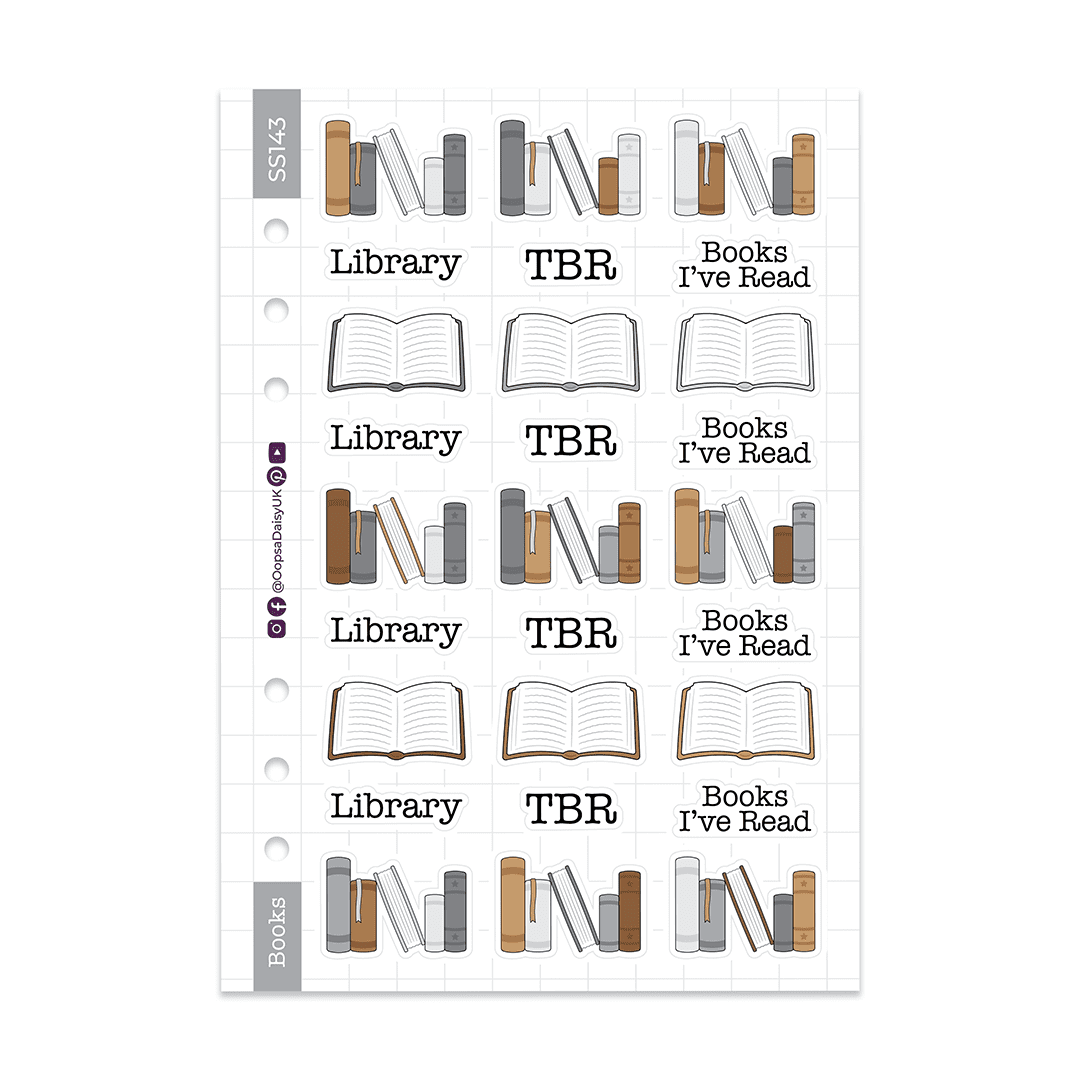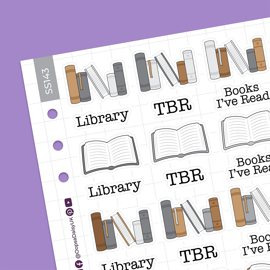 Brighten up your journal or planner with these ‘TBR’ book stickers. The sheet includes 27 stickers, featuring rows of vintage style books, useful headings for your book spreads, and open books.