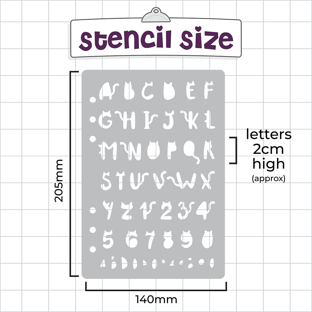 The Team Cat & Dog Font Journal Stencils add a playful, pet-inspired touch to your journal and planner pages. Featuring charming letter shapes with subtle cat and dog details, like tails and bones, these fun, characterful 2cm (approx) letters are perfect for animal-themed spreads, pet planners, and quote pages.