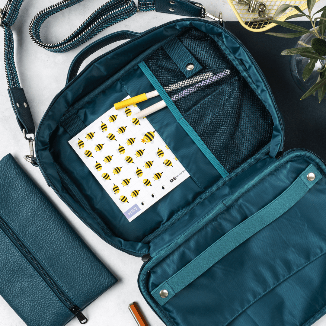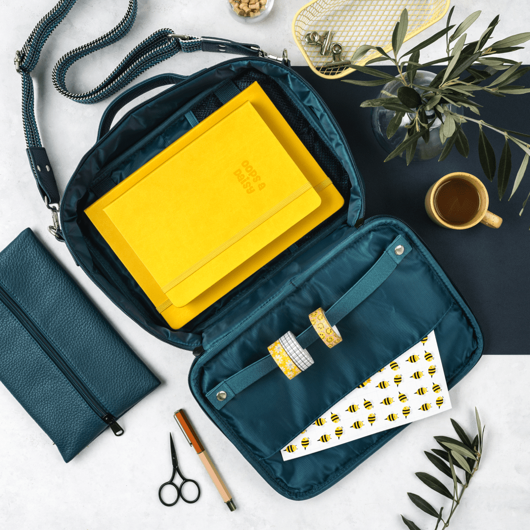 At Oops a Daisy we’re hardcore stationery lovers, so we know what you want out of a bag… Storage and style! This gorgeous teal blue vegan leather bag has ample space for your everyday essentials, as well as your precious notebook or planner, plus dedicated storage for your favourite stationery!