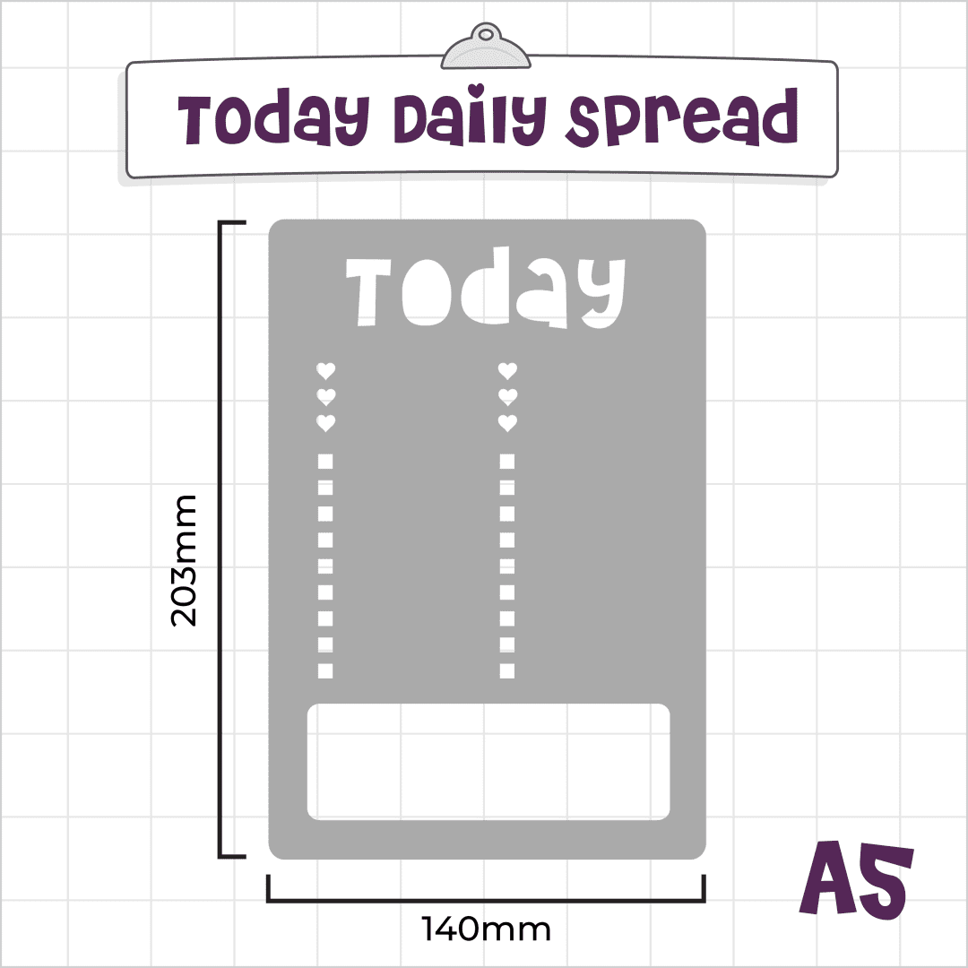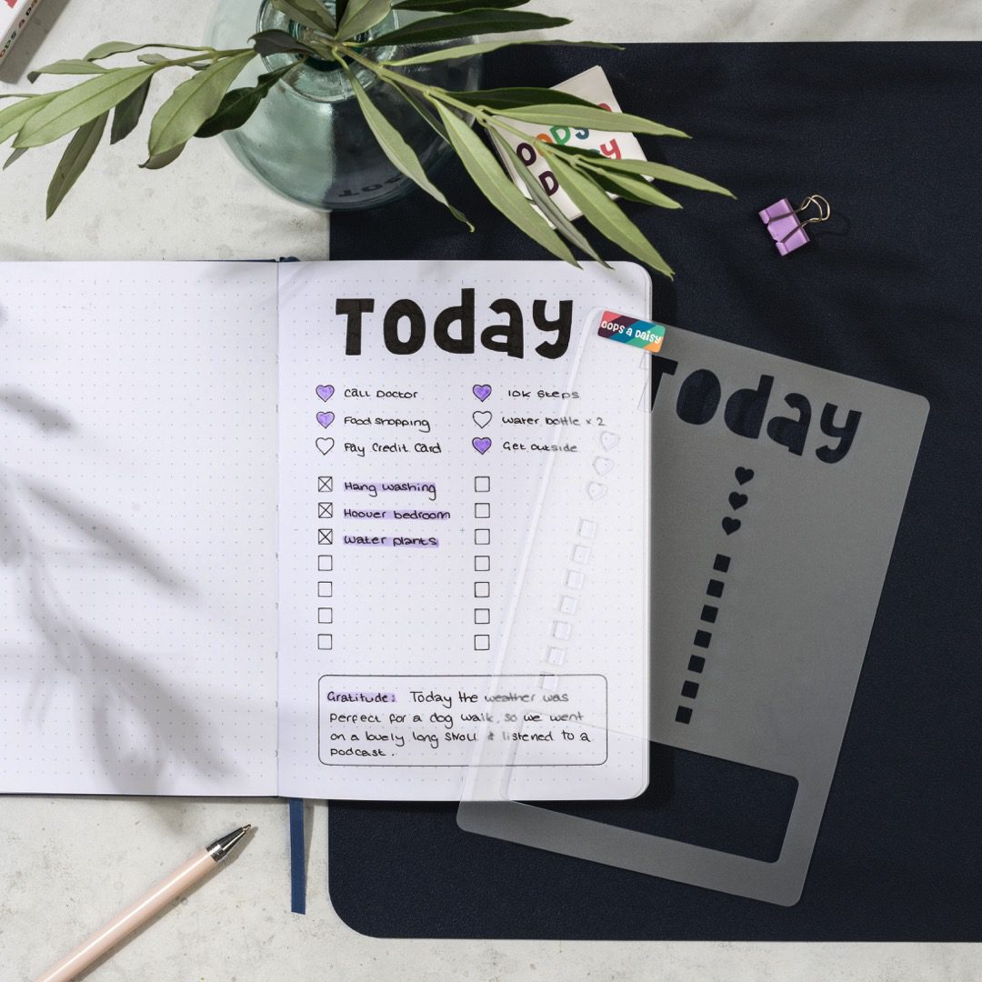 This journal stencil helps you to create daily spreads in your journal quickly and easily.