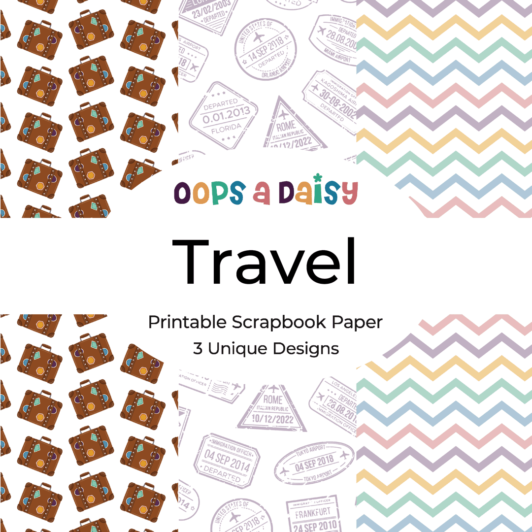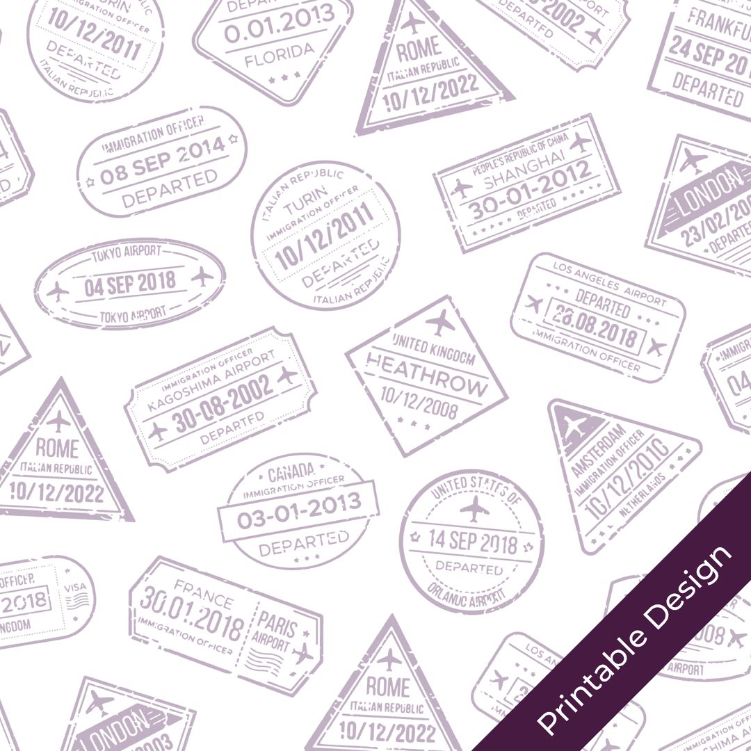 This set of three travel inspired patterns are perfect for any travel journal. Featuring fun suitcases and pastel passport stamps.