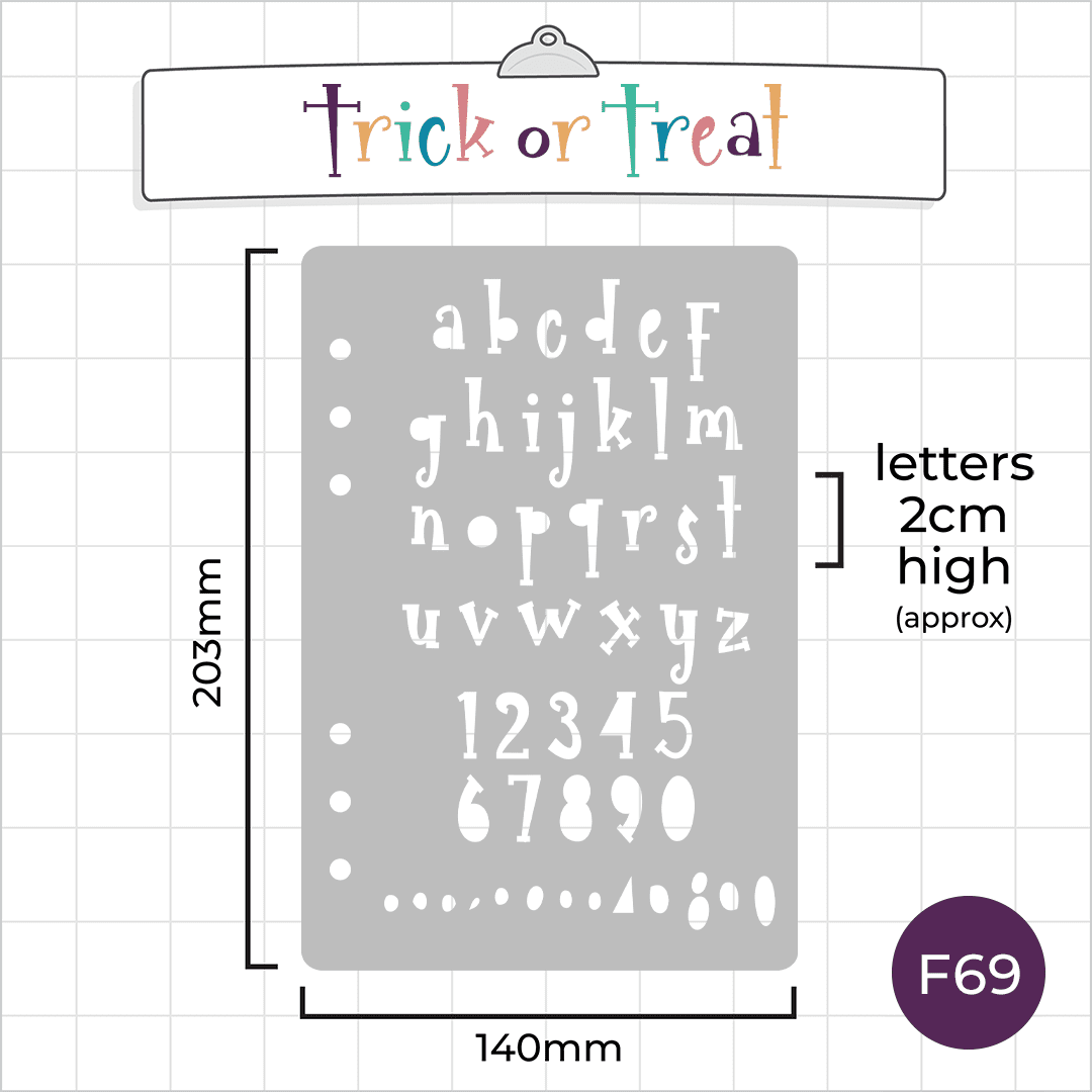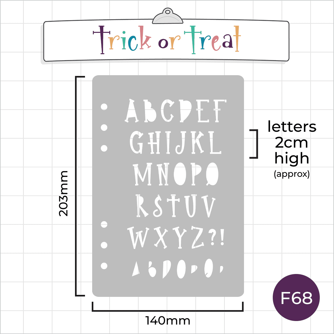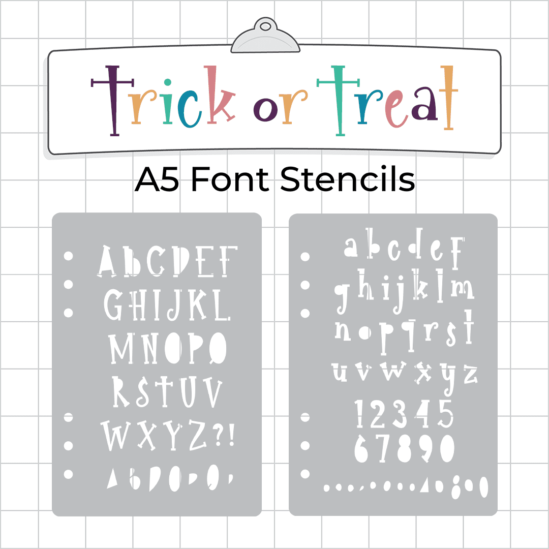 These Trick or Treat Font Journal Stencils feature quirky, slightly spooky lettering inspired by Halloween themes while remaining clear and easy to use in journals and planners. The playful 2cm (approx) letters are perfect for seasonal headers, October spreads, and themed pages, adding a fun touch without overwhelming your layout.