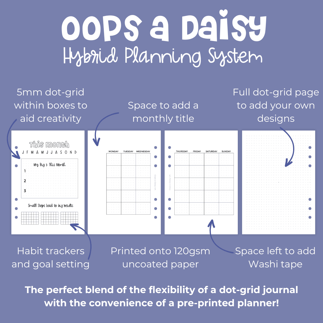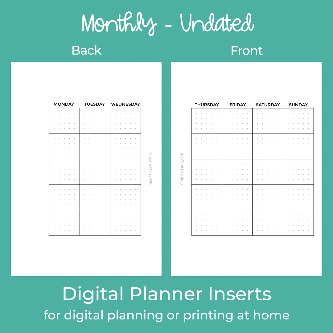 About the Undated Monthly Planner (Mon or Sun Start) – A5 Hybrid Planner Insert – DIGITAL DOWNLOAD