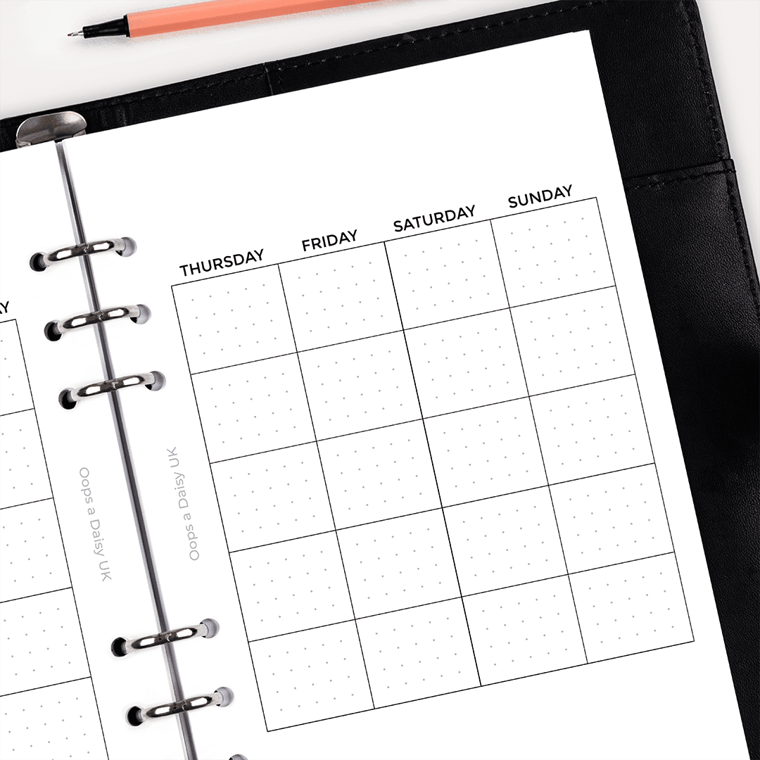 UNDATED MONTHLY PLANNER (MON OR SUN START) – A5 HYBRID PLANNER INSERT – DOWNLOAD