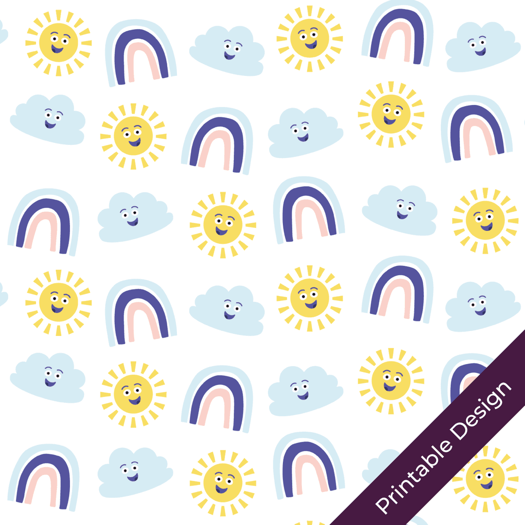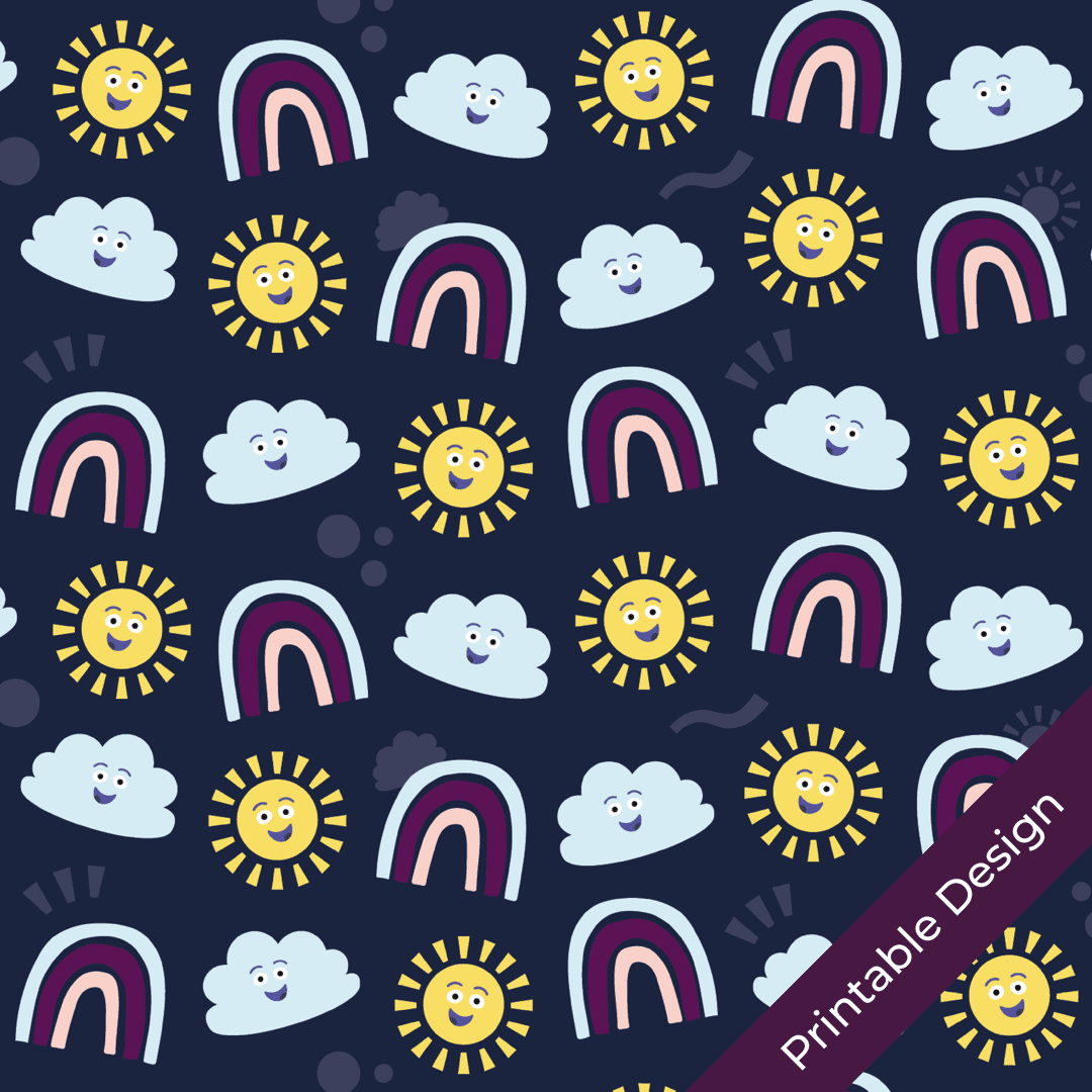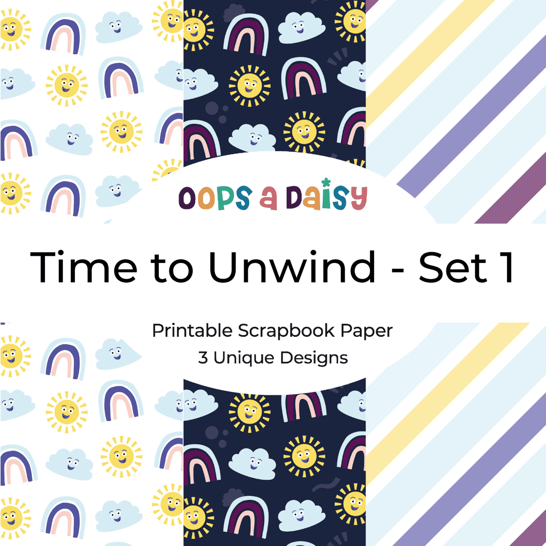 Our ‘Time to Unwind’ designs are perfect for a self-care journal. A mix of soothing blues, purples and yellow, with rainbows and rainclouds motifs, and co-ordinating stripes.