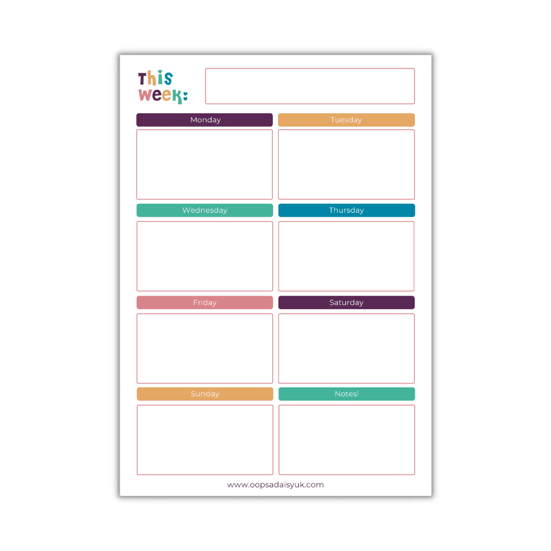 Our weekly planner is downloadable as a high quality PDF for you to print at home.